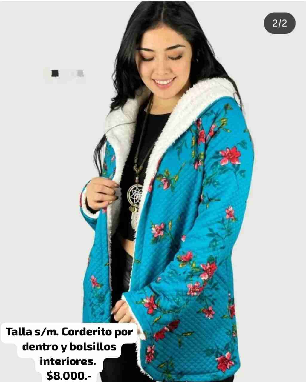 Abrigo azul con estampado floral y corderito interior, ideal para el invierno. Cómodo y elegante. Nuevo, talla standar, pero da s/m.