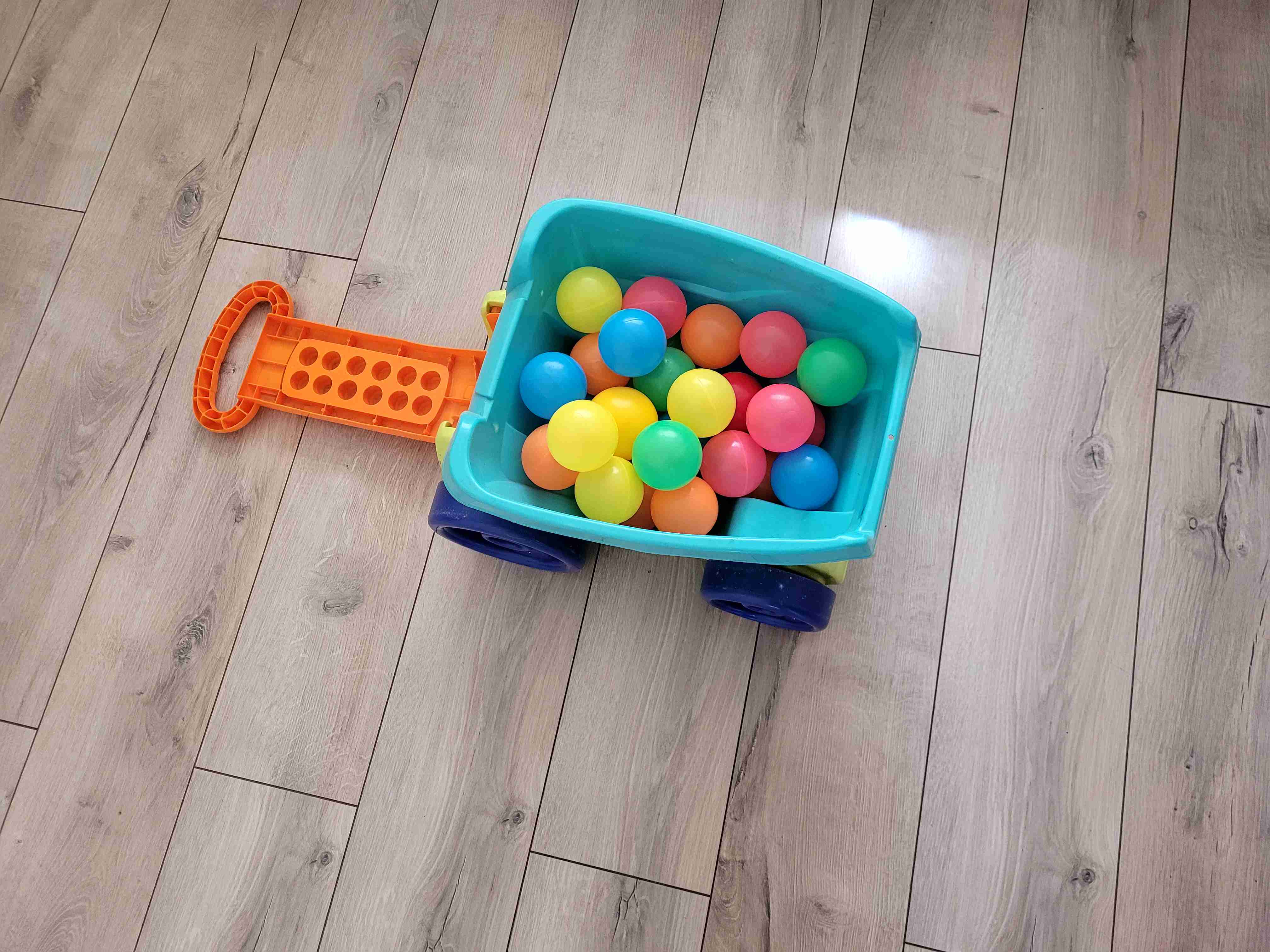 Carretilla de juguete con pelotas