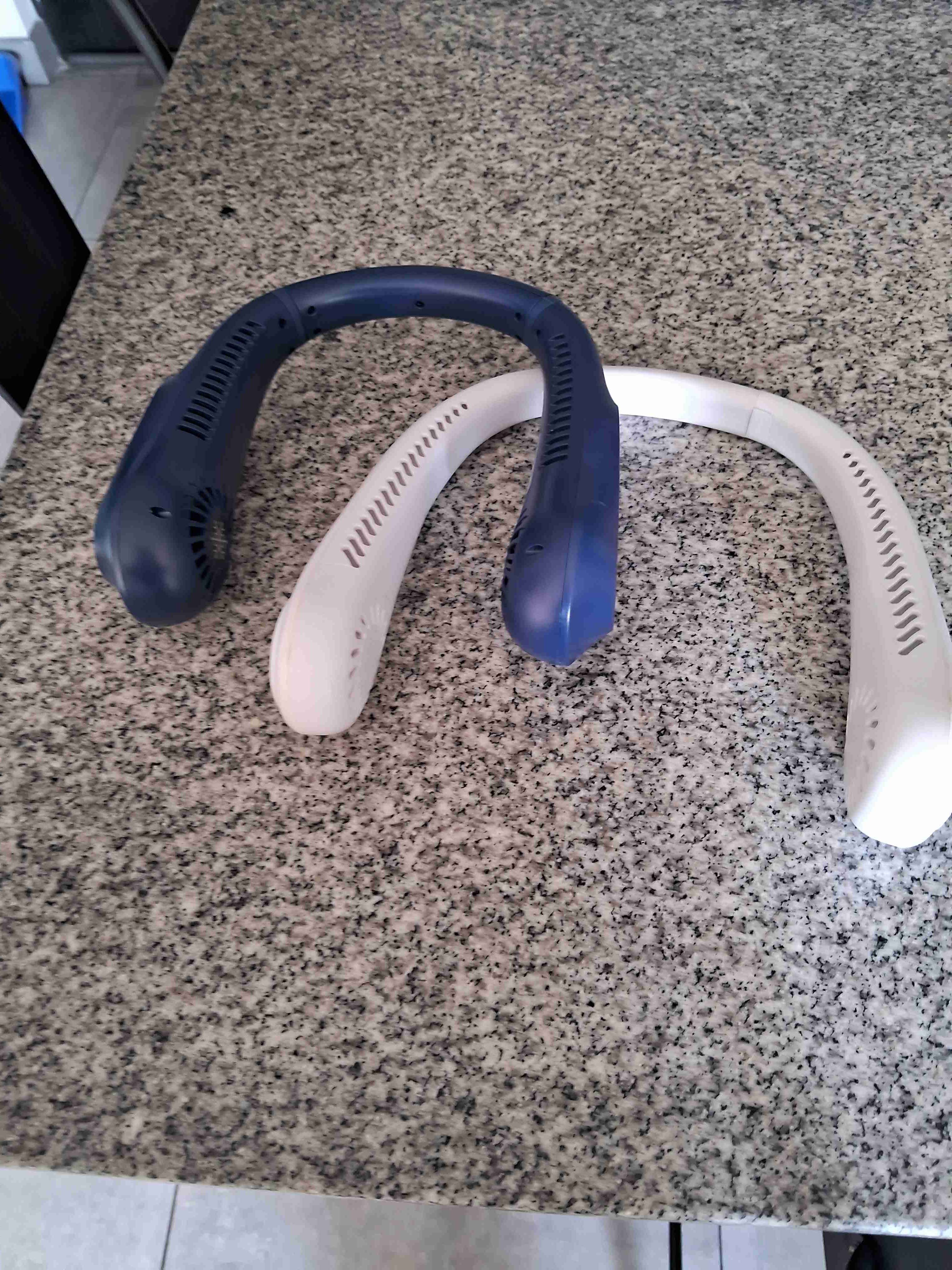 Ventiladores de cuello portátiles en azul y blanco. Ideales para mantenerse fresco. Buen estado.