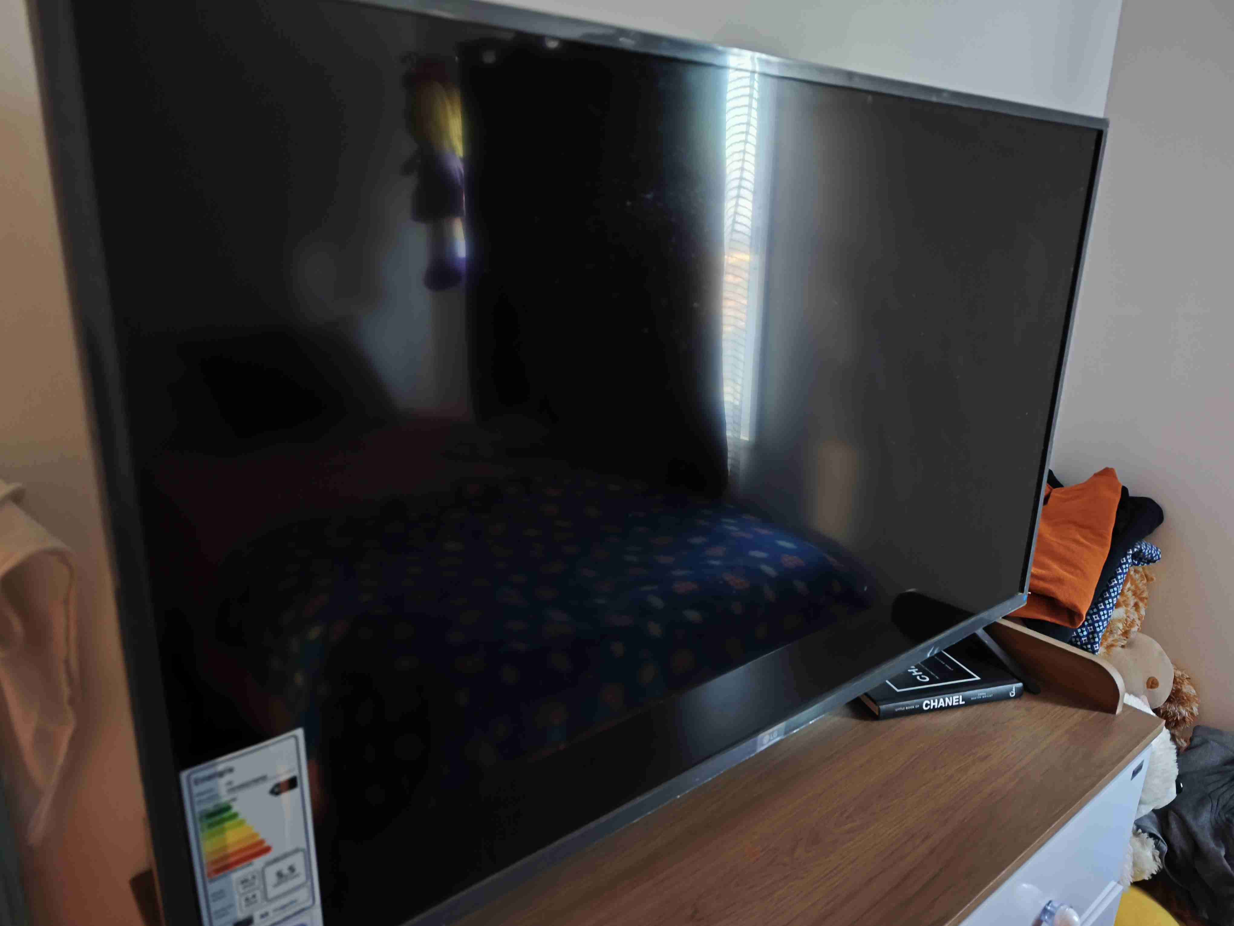 Televisión LED en buen estado, ideal para la sala de estar. Perfecta para disfrutar de tus series favoritas. Detalle pequeño en la entra del cable para (tv cable)