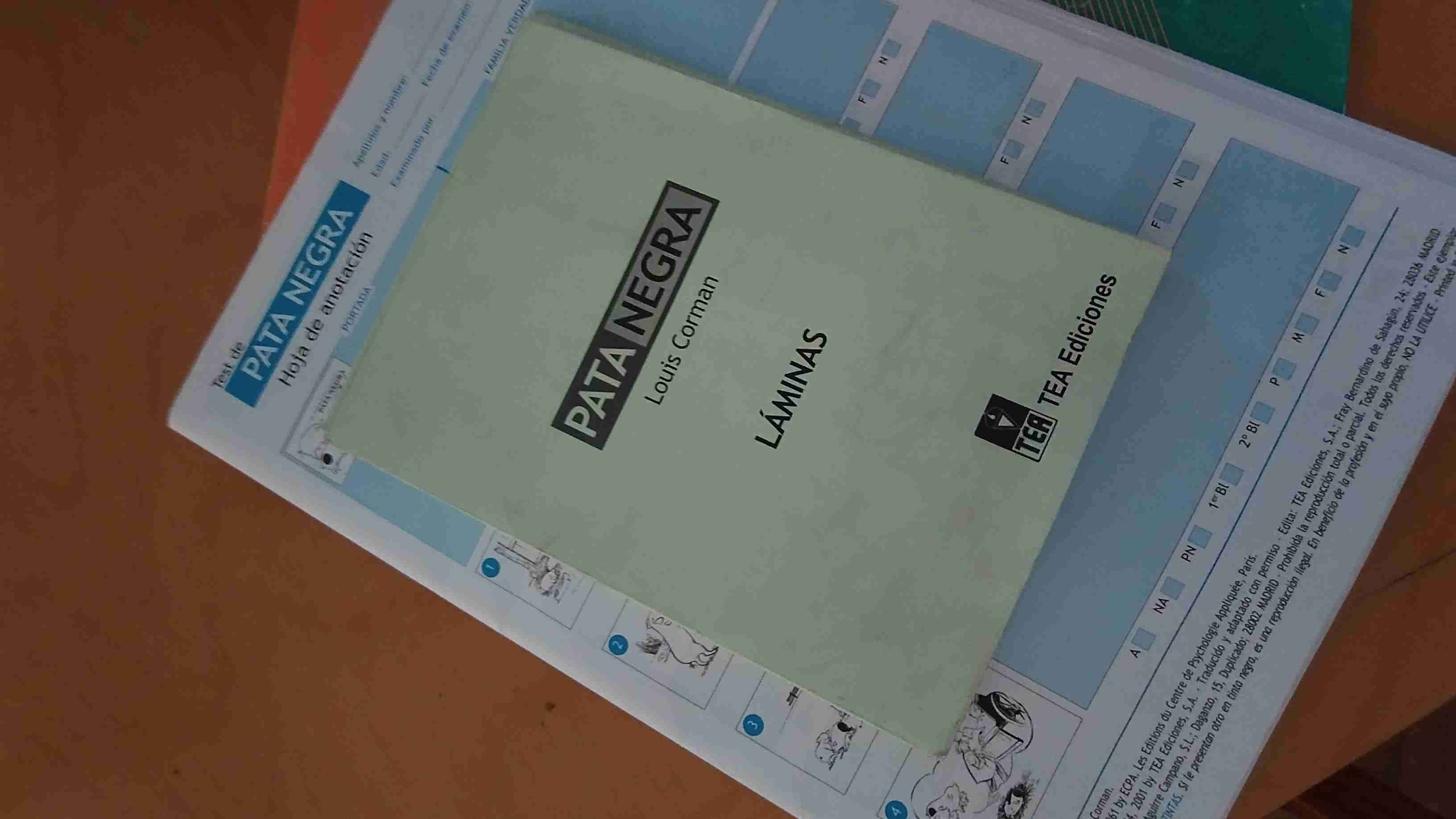 Libro + láminas del Test Pata Negra en buen estado. Ideal para psicólogos y educadores.