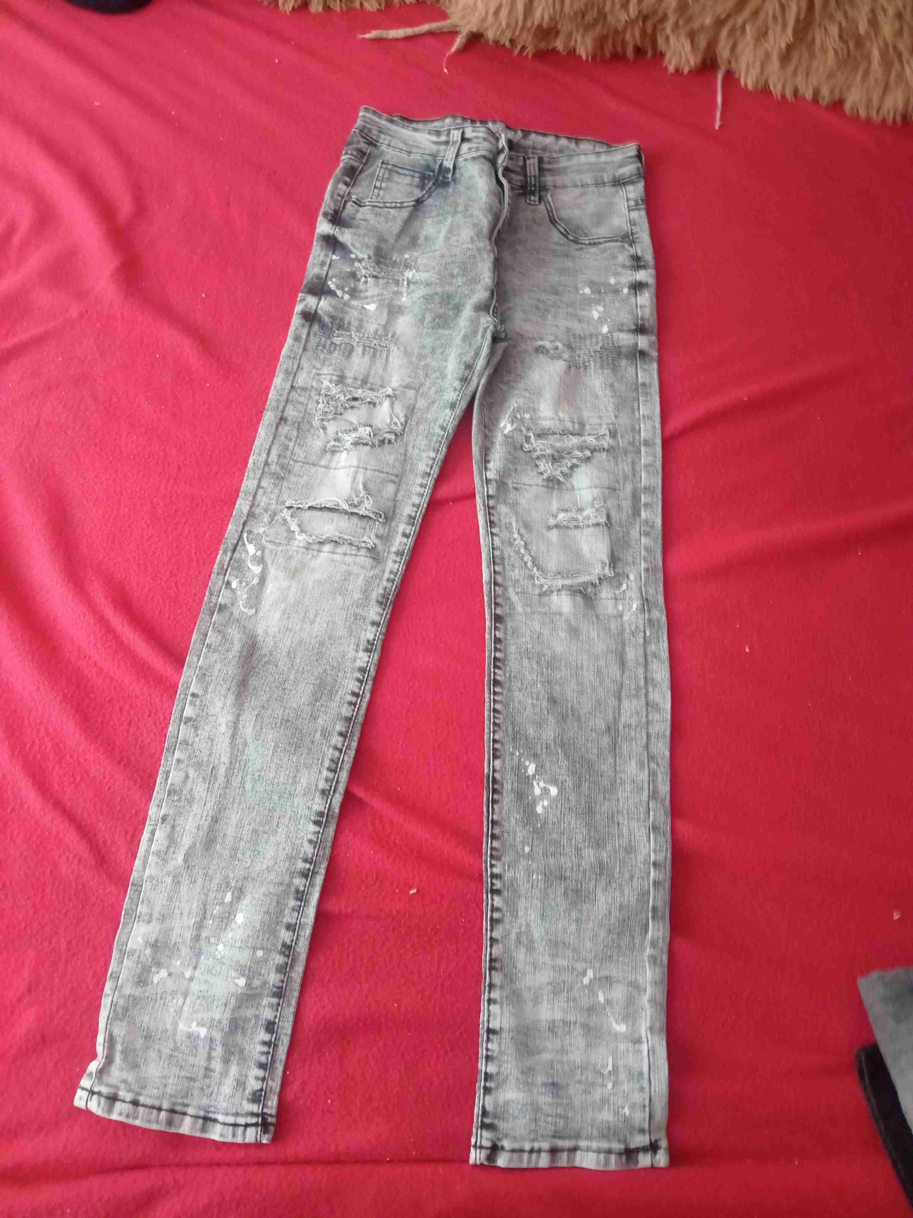 Jeans grises con estilo desgastado. Ideales para un look casual y moderno. Nuevos
