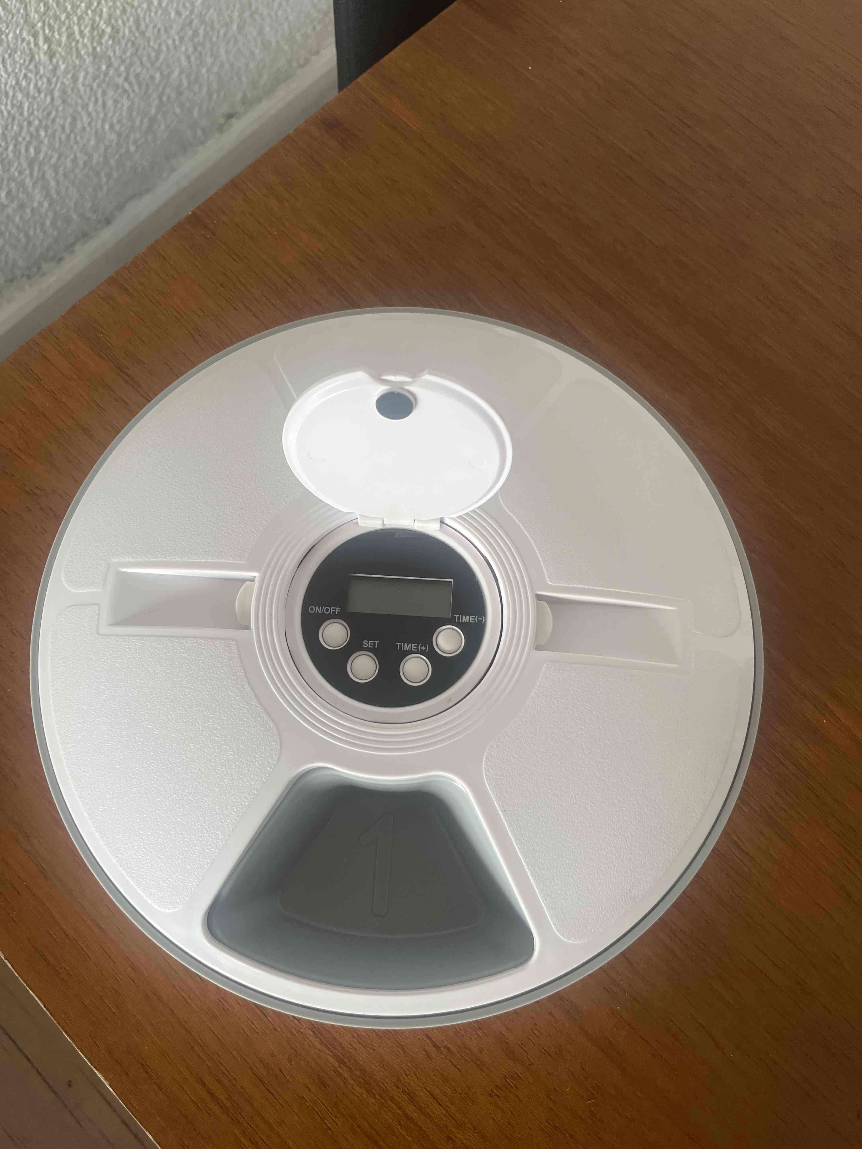 Dispensador de comida para mascotas con temporizador. Ideal para mantener la rutina de alimentación.
