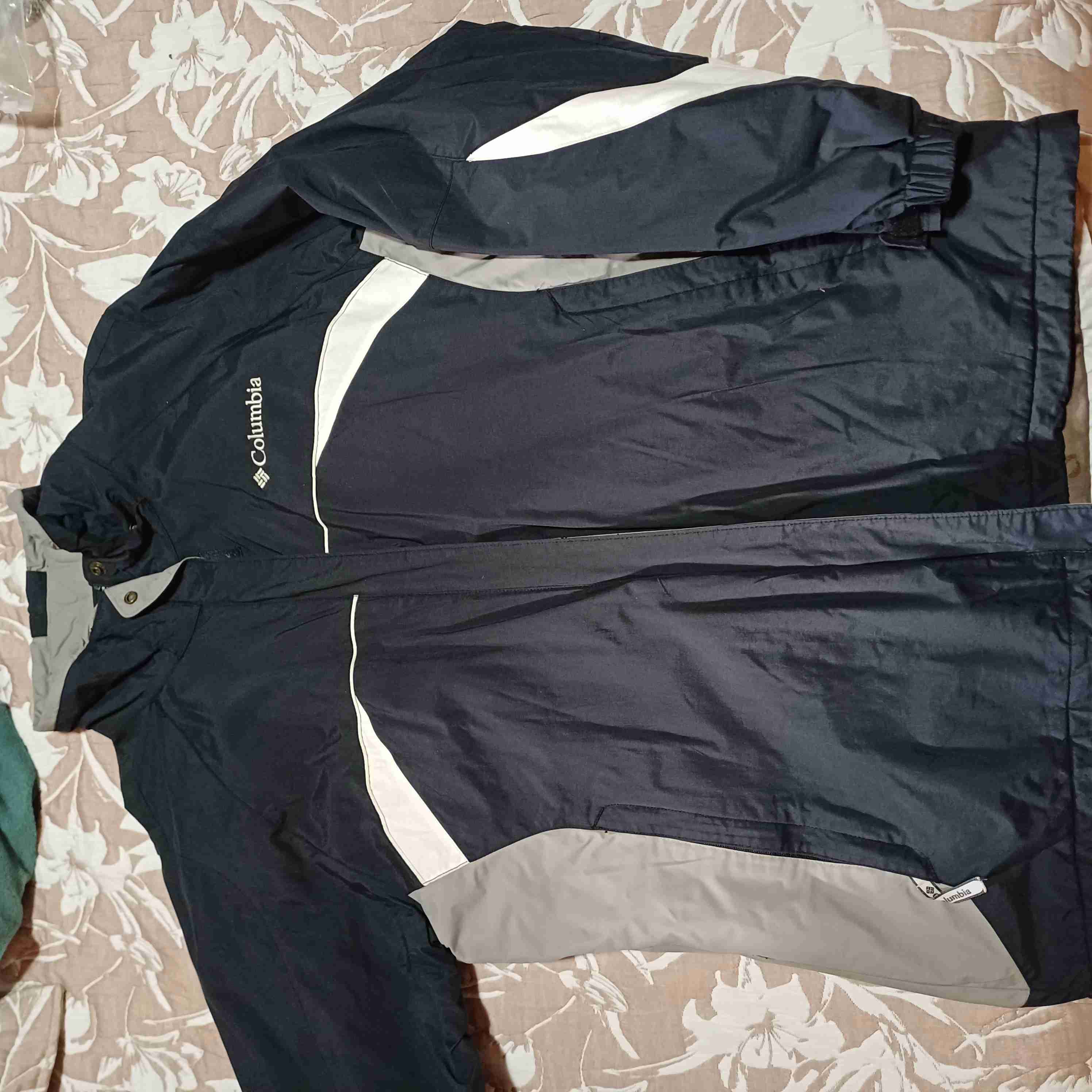 Chaqueta Columbia en buen estado, ideal para actividades al aire libre. Color negro con detalles grises y blancos.