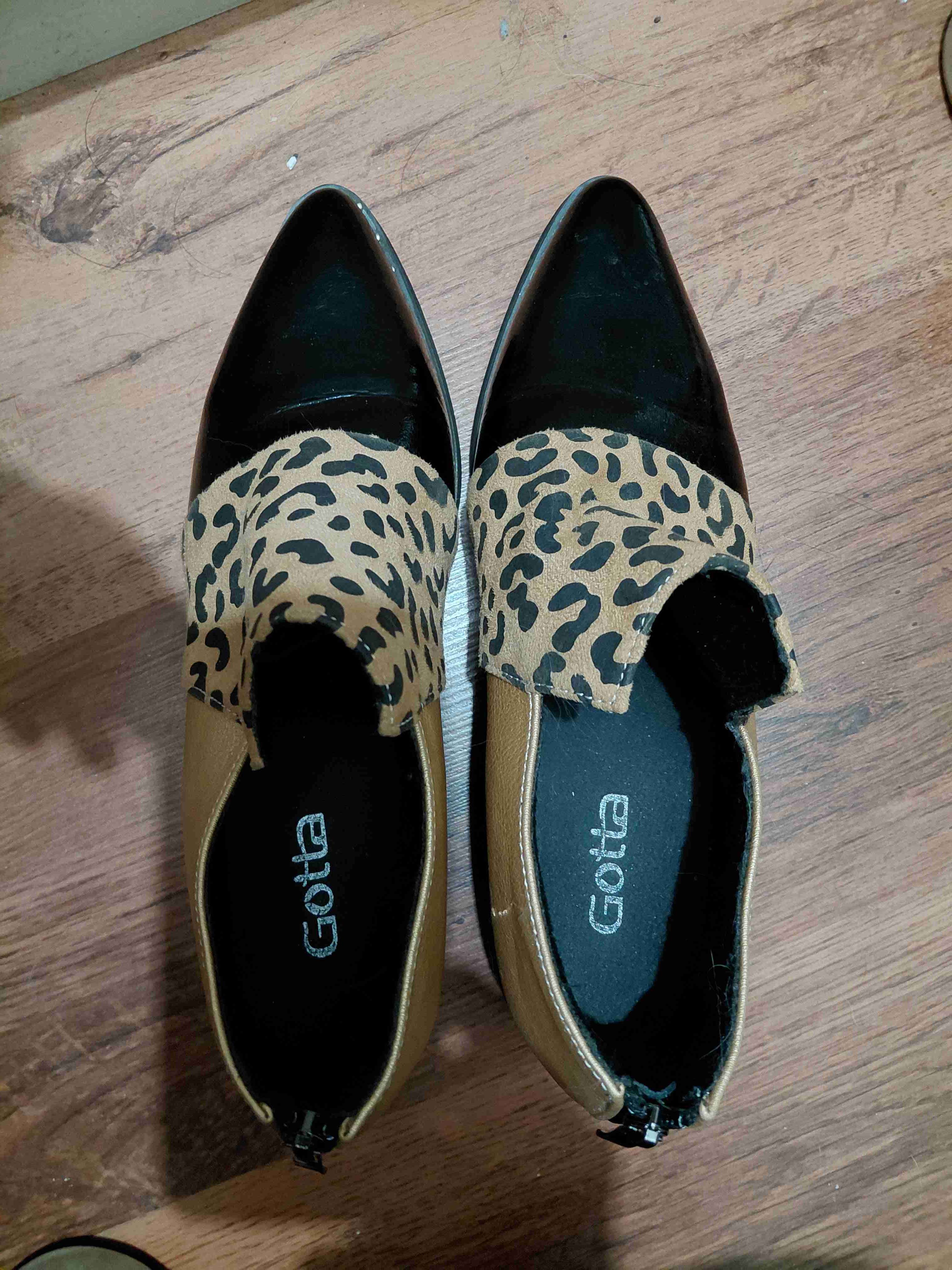 Zapatos tipo mocasín con diseño de animal print, ideales para lucir en ocasiones formales. En buen estado general.