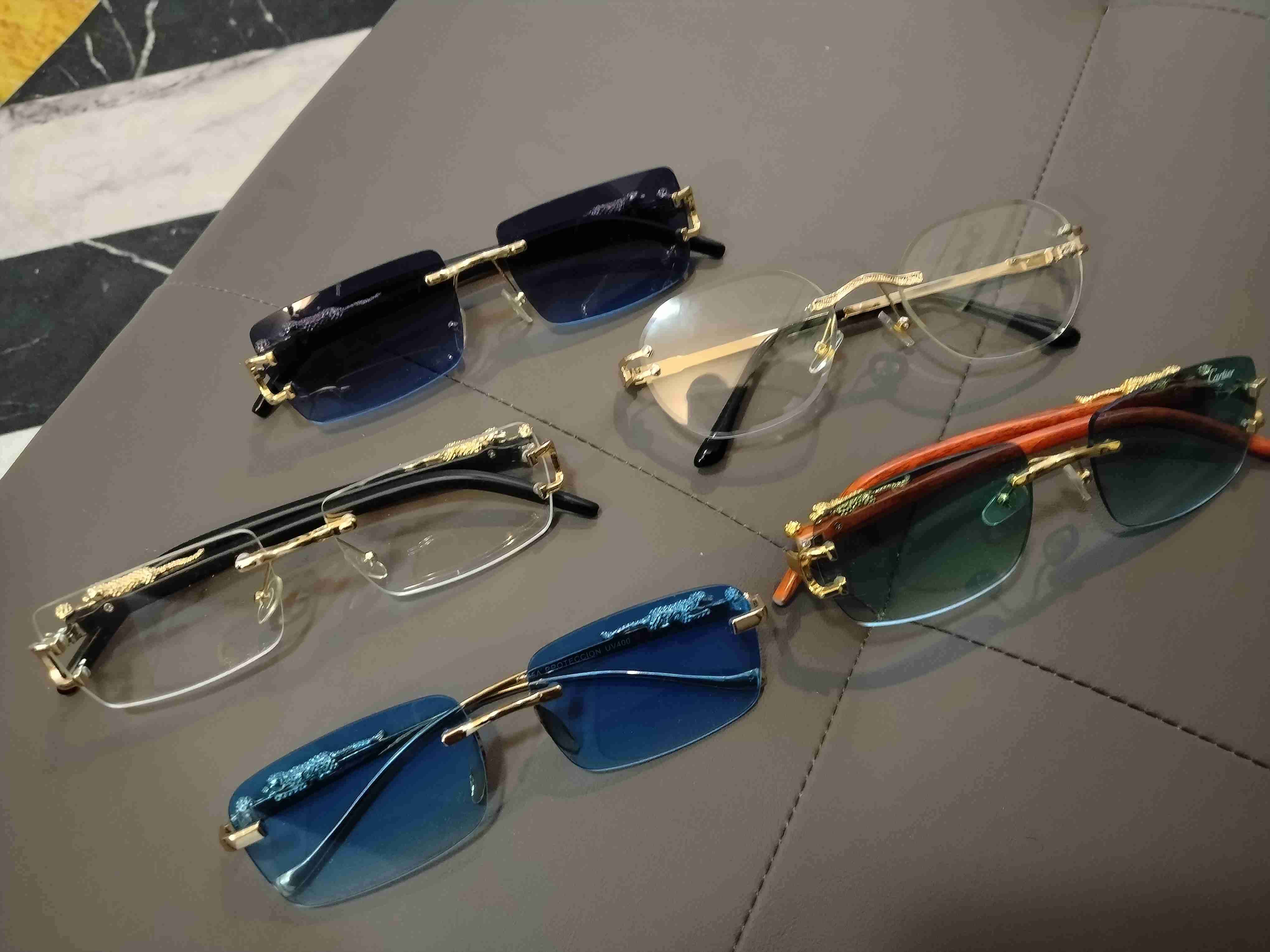 Set de gafas doradas y azules