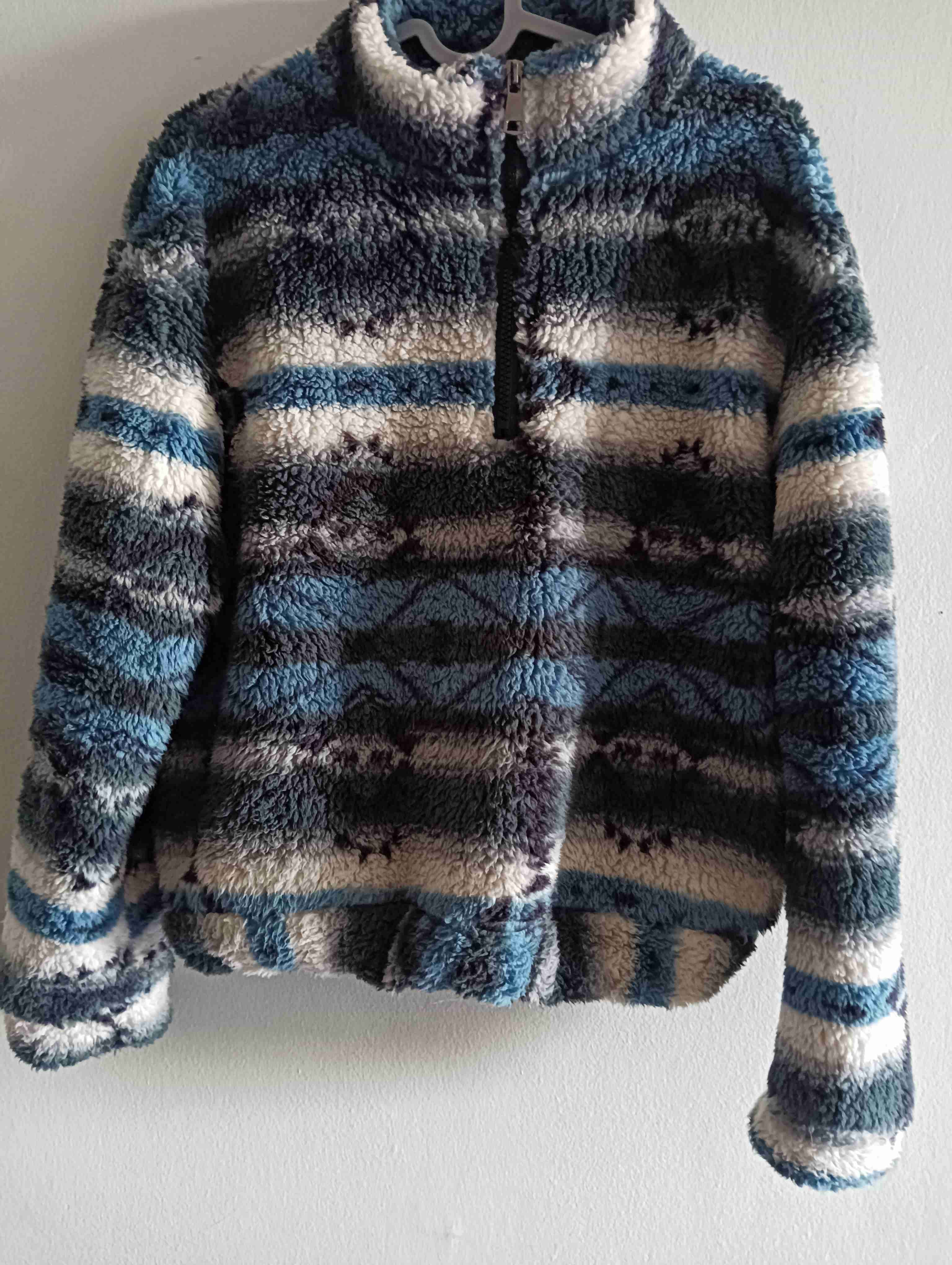 Polar jaspeado en tonos azules y grises, ideal para el invierno. Está en buen estado, abrigador y cómodo. Talla S