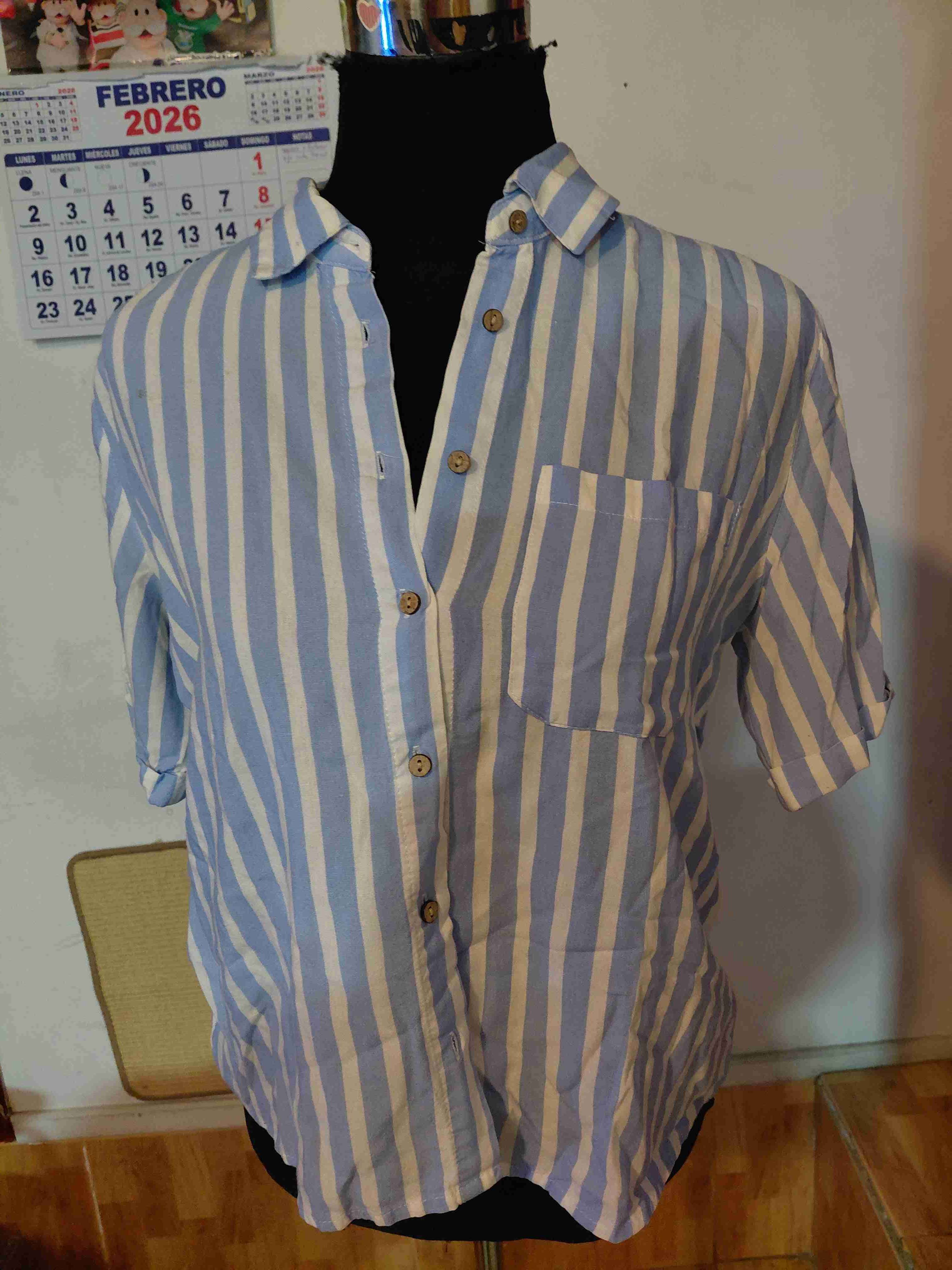 Camisa de rayas azul y blanco, perfecta para un look casual. Buen estado.