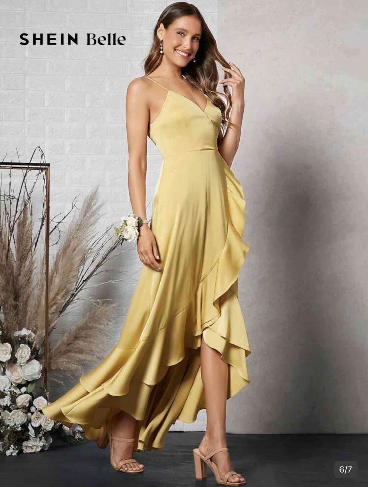 Elegante vestido amarillo con volantes. Perfecto para eventos formales, en buen estado.