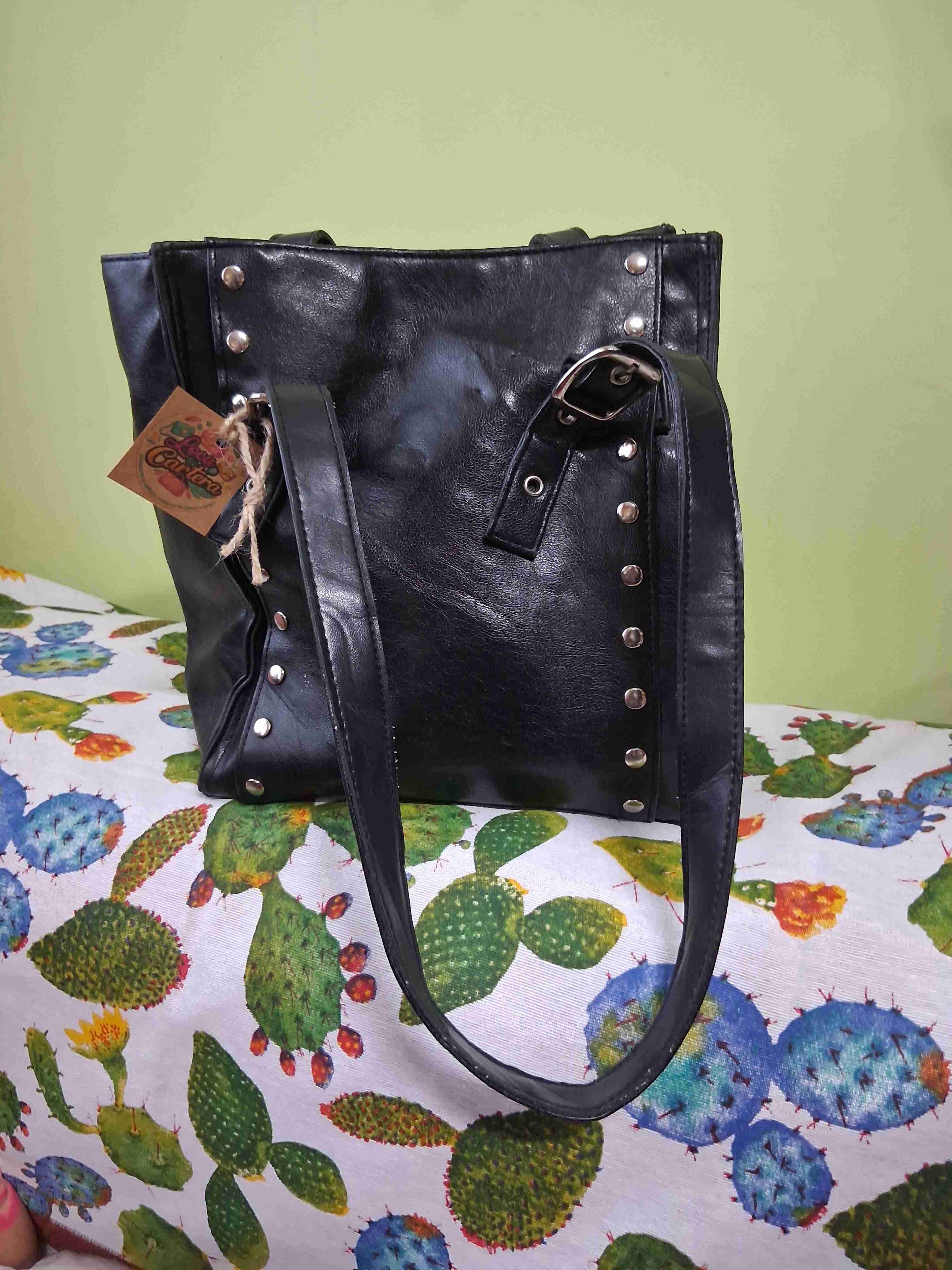 Bolso de negro con tachas metálicas, ideal para uso diario. Se ve en buen estado.