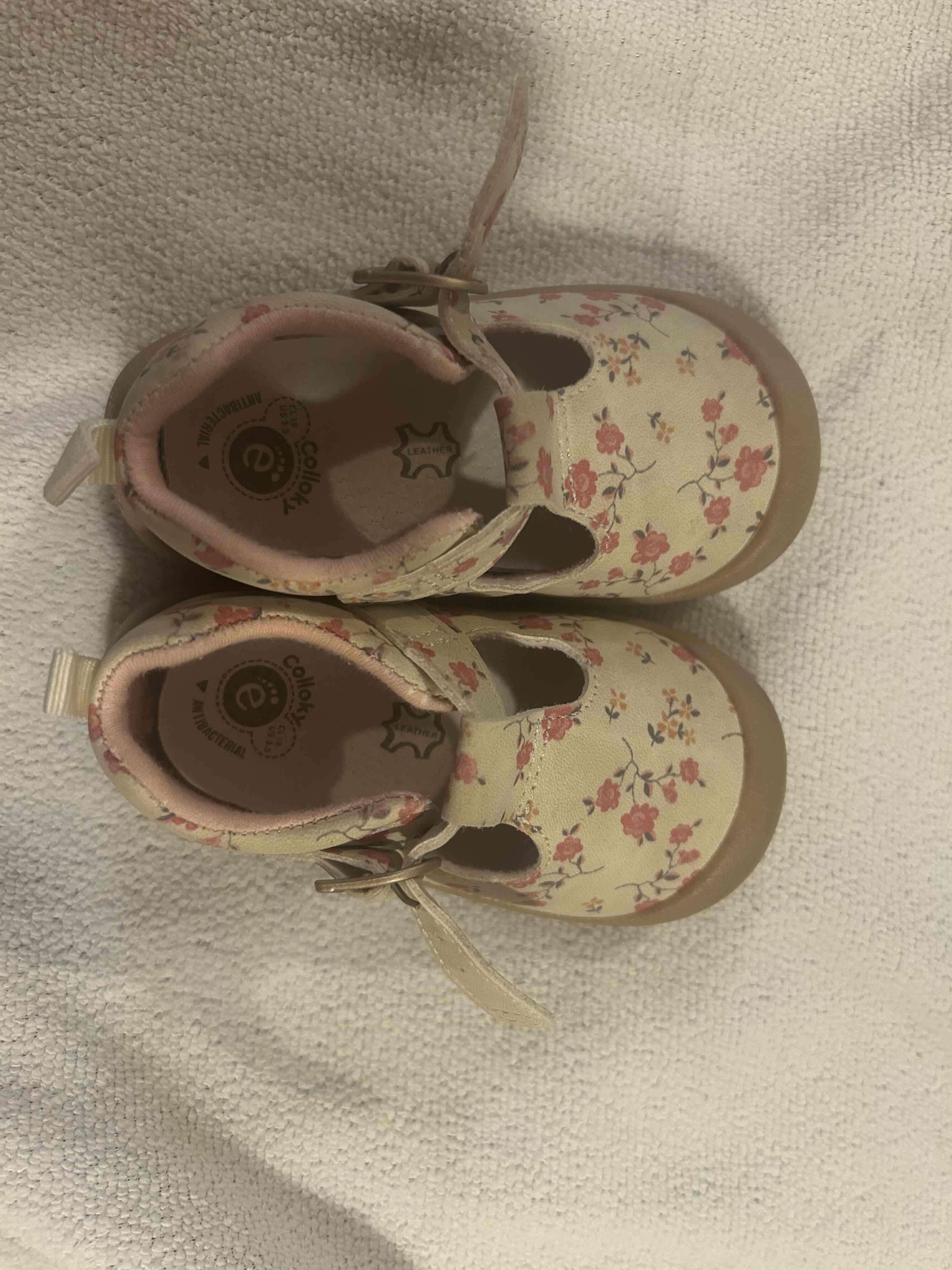 Lindos zapatos de bebé con diseño floral colloky. En muy buen estado, perfectos para ocasiones especiales. Talla 19