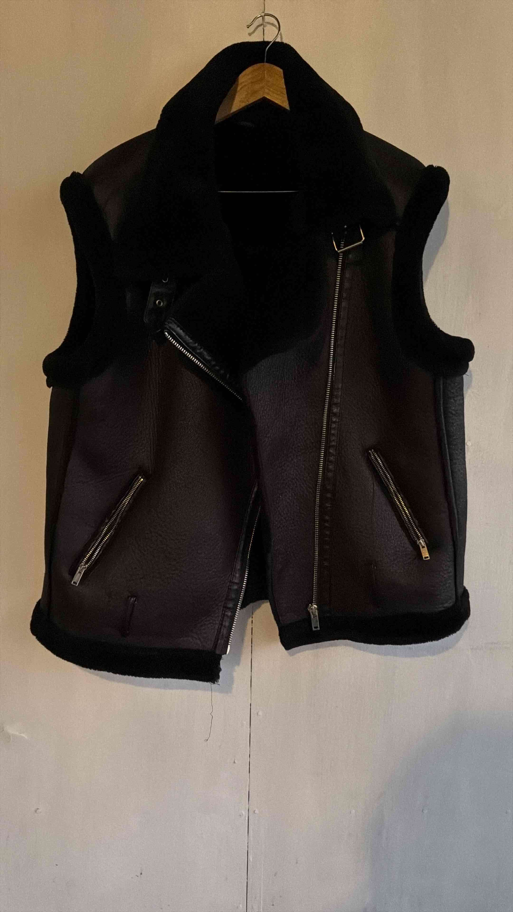Chaleco de cuero negro, estilo moderno y sin mangas. Ideal para días fríos, en buen estado.