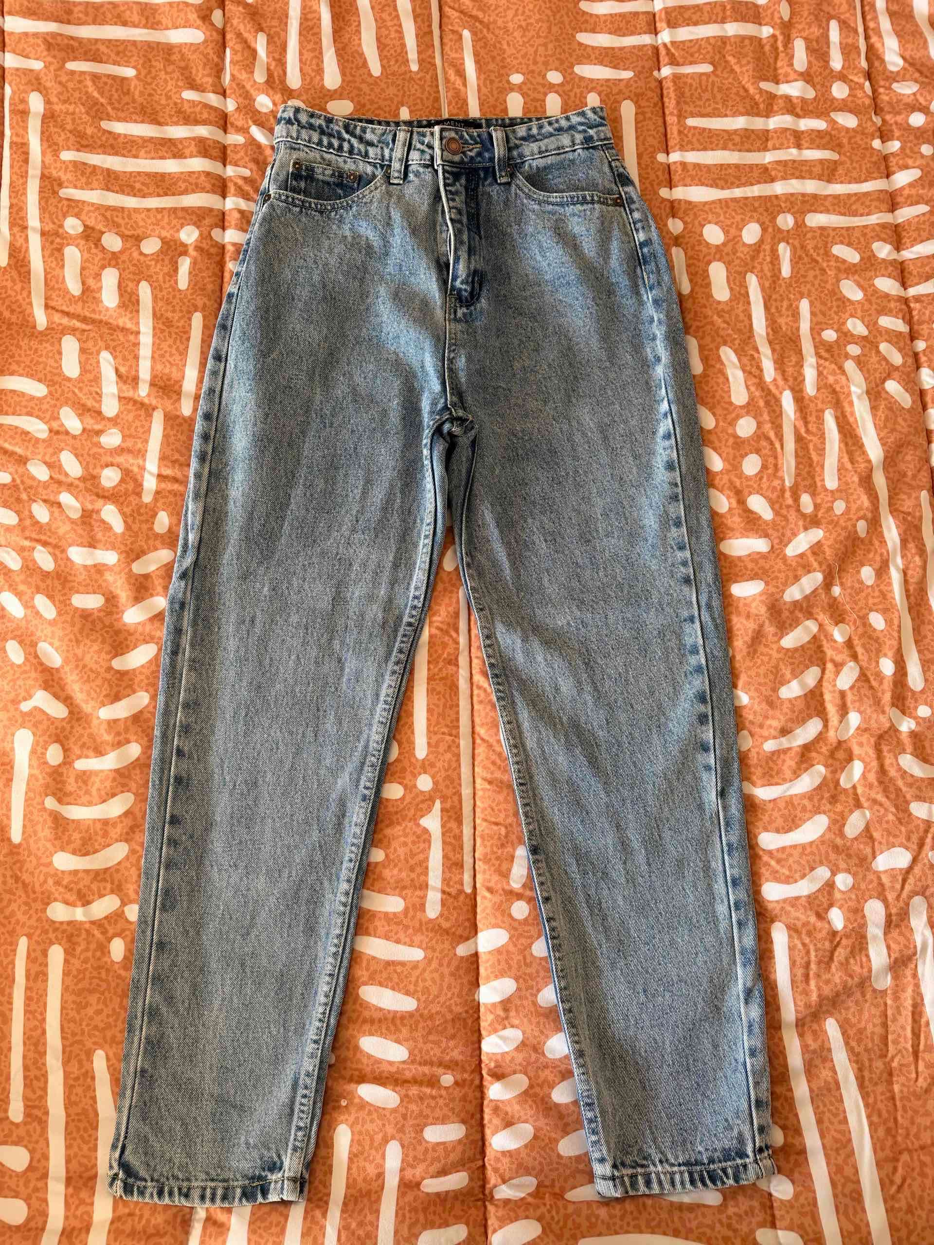 Jeans de corte recto en azul claro. Ideal para un look casual y cómodo. Estilo Mom, talla 38.