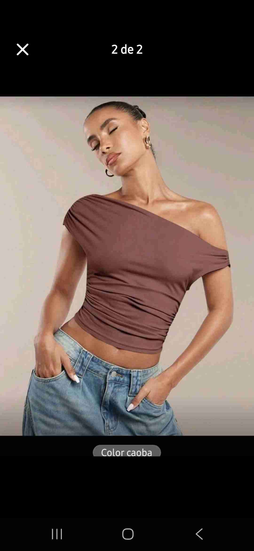Elegante top asimétrico en color café, ideal para ocasiones casuales o salidas. Nuevo presenta un diseño moderno y ajustado.