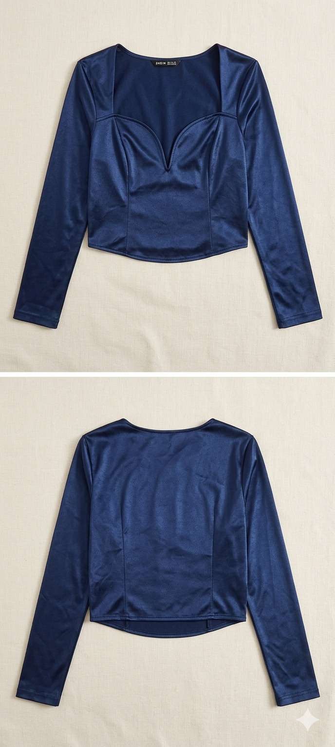 Top azul de satén Shein