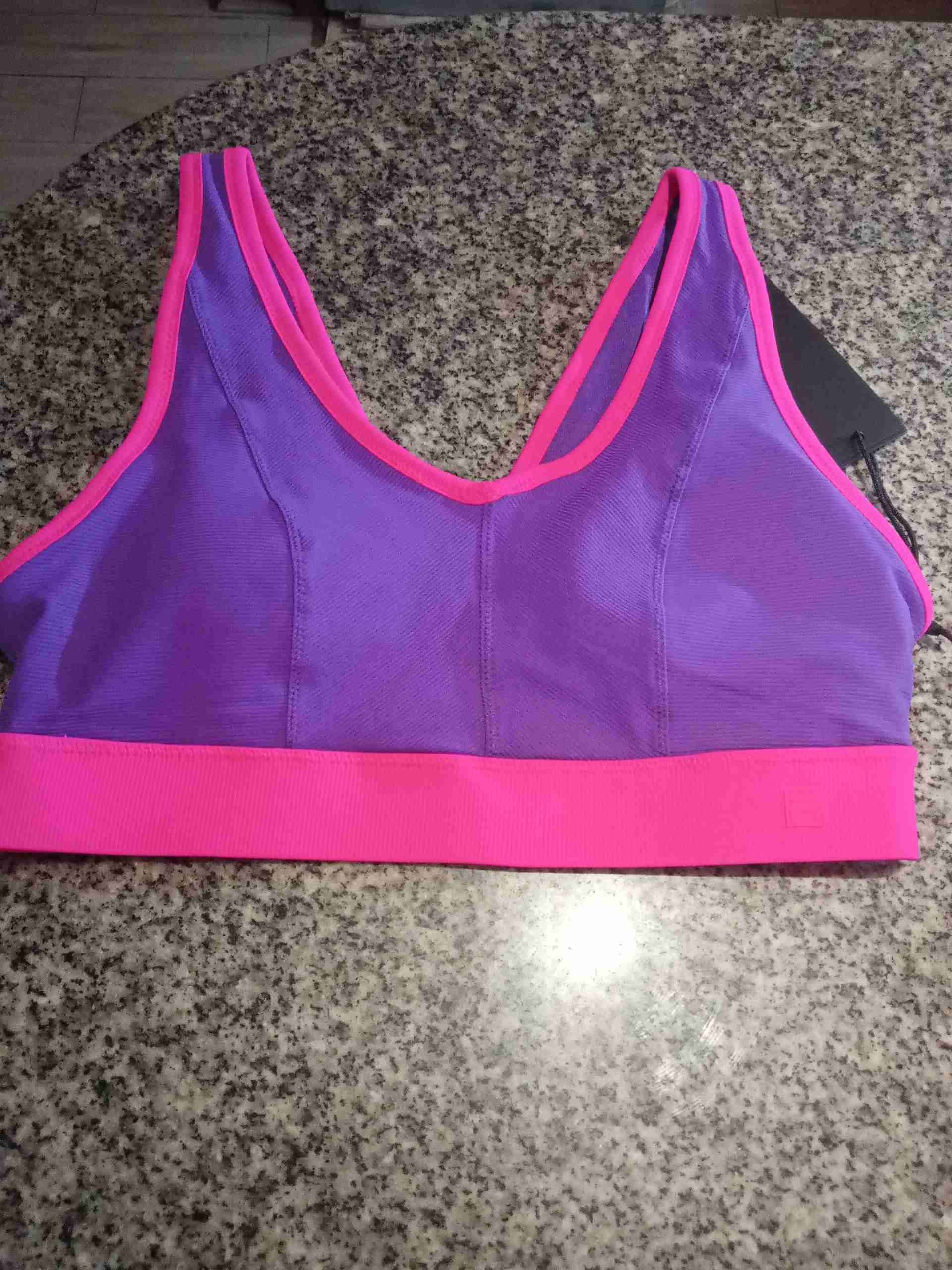 Top deportivo en tonos morado y rosado, ideal para actividades físicas. Talla S marca Fila