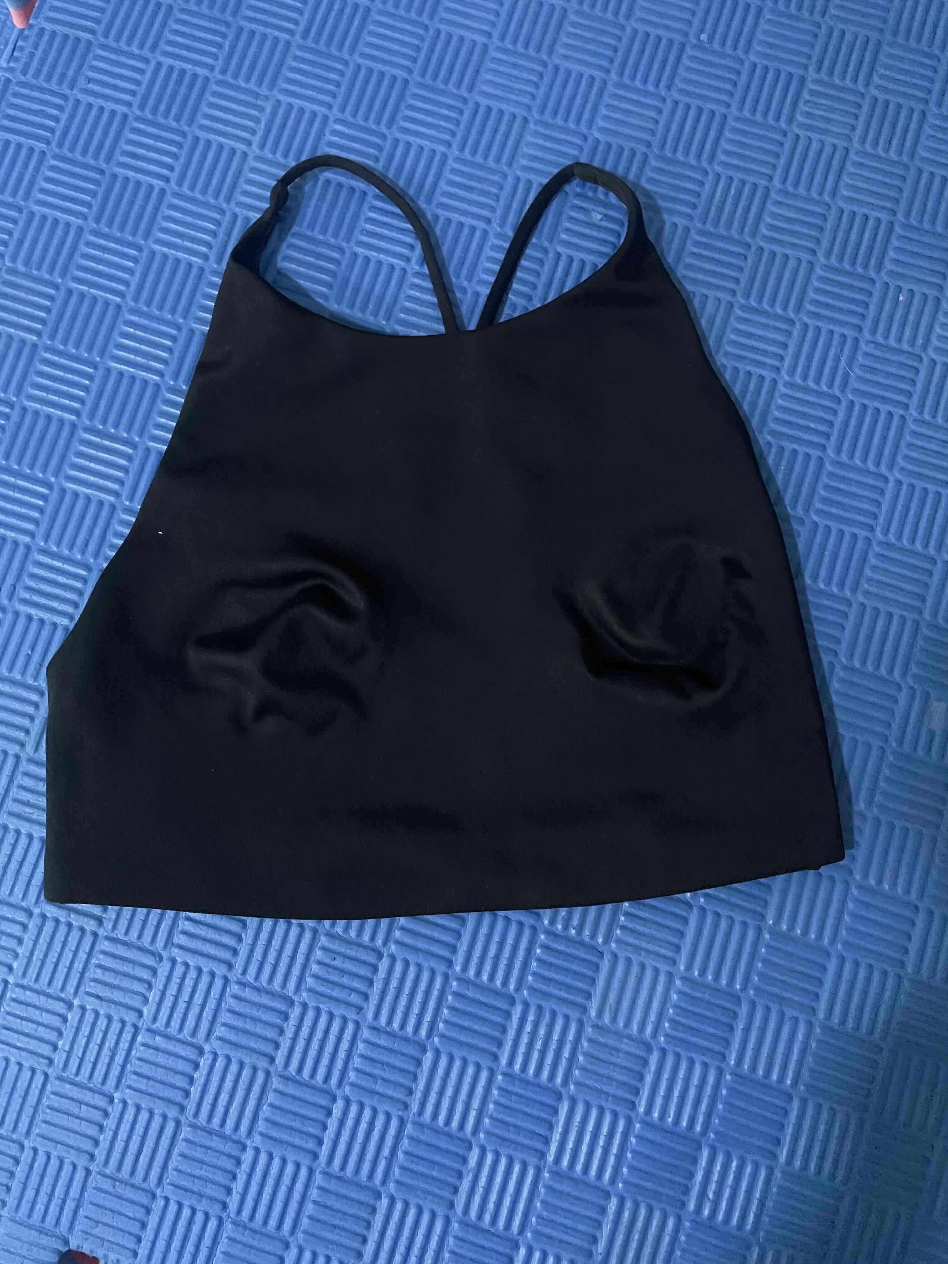 Top sin mangas en color negro, ideal para hacer deporte. En buen estado general con signos leves de uso. Talla S