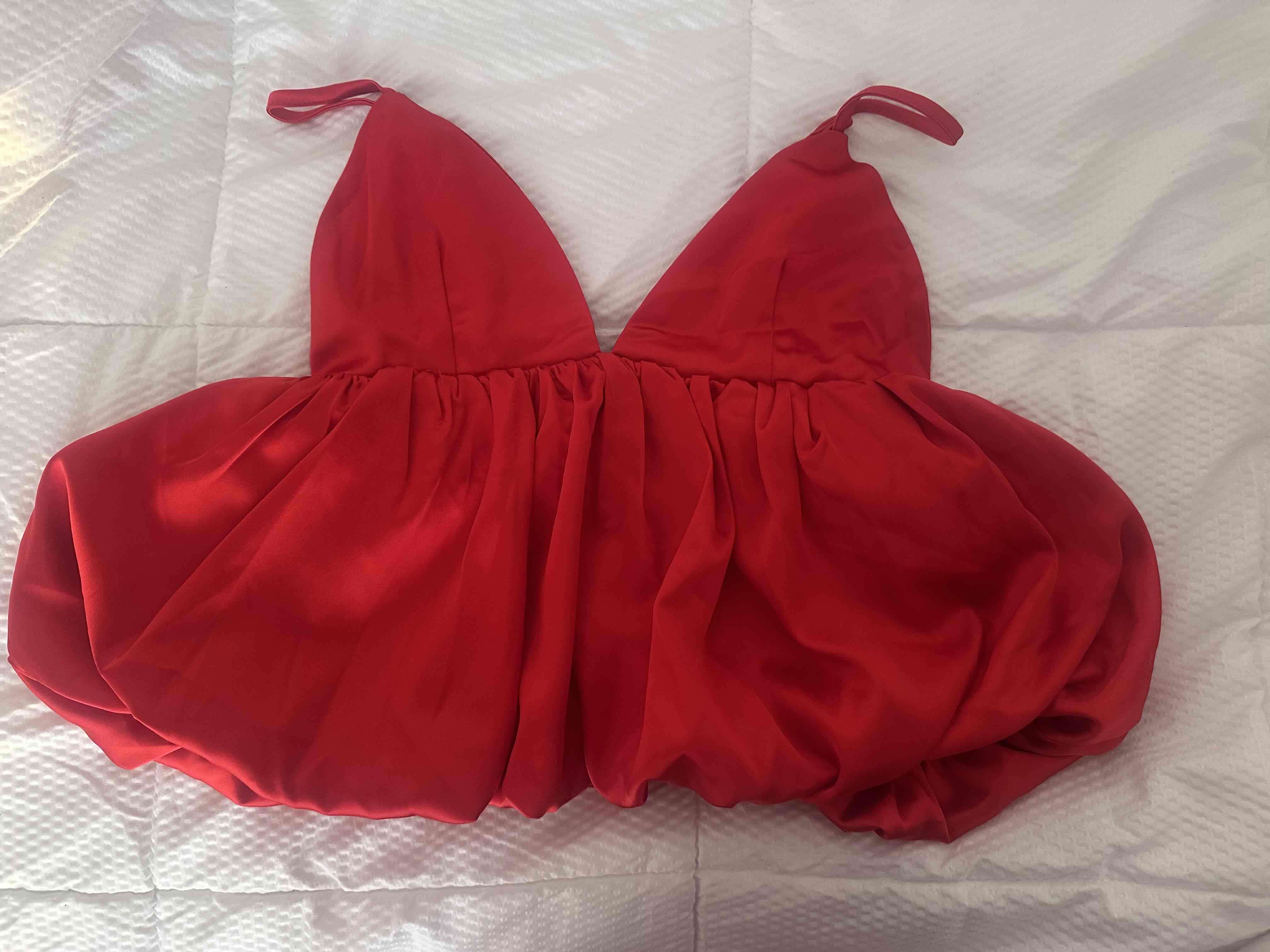 Top rojo de tela satinada, con un diseño muy femenino y favorecedor 💃 Cuenta con escote profundo en V que resalta el busto y tirantes ajustables para un mejor calce. La parte inferior tiene un efecto fruncido tipo globo que le da volumen y un toque elegante, ideal para salir, eventos o combinar con jeans o faldas para un look más chic 🔥 🔸 Talla: S 🔸 Color: Rojo intenso 🔸 Material: Satinado suave