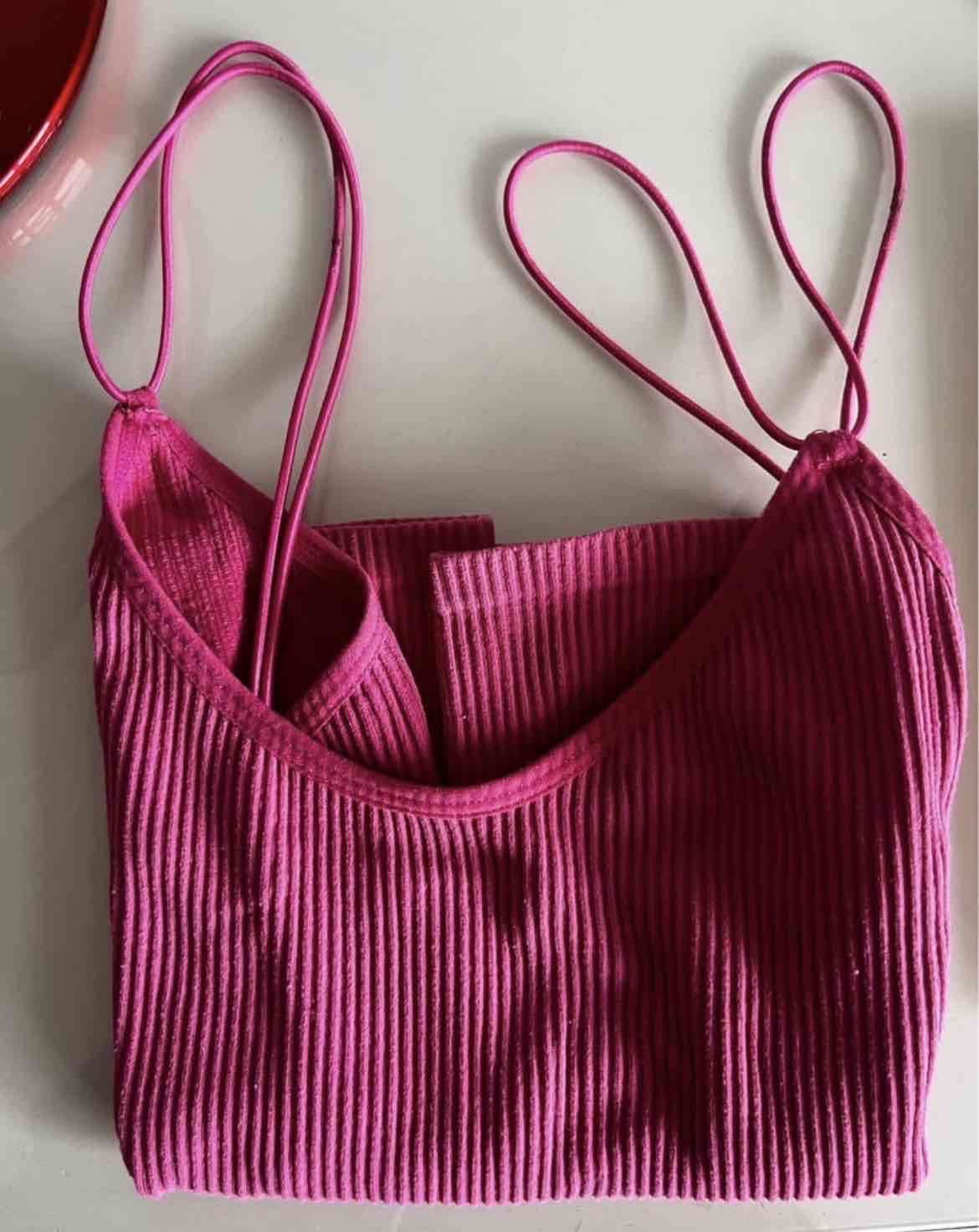 Top de tirantes delgado en color rosado vibrante, talla M, elasticado. En buen estado.