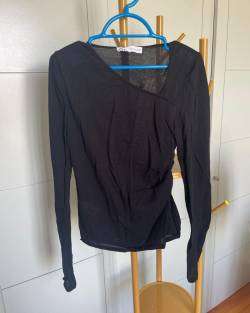 Top tejido Zara cuello asimétrico, negro, talla M, semitransparente, delgado, con un fruncido y un pequeño tajo en uno de sus costados. CASI NUEVO, EXCELENTE ESTADO