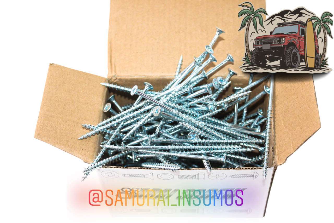 *Kit 100 En 1 . *Tamaño 3 Pulgadas y Media . *Autoperforante . Envio No Gratis !!! https://www.mercadolibre.cl/tornillo-3-pulgadas-y-media-autoperforantecaja-100unidades/up/MLCU3452266951?pdp_filters=item_id:MLC3188682716 . *Para: Madera Terciado Estructural Yeso Cartón Volcanita OSB Plancha Yeso Metales Ligeros - Lata Pallet Muebles /Muebleria . *Cabeza Phillips o Cruz . *Terminación Galvanizado . Disponible: -1 Pulgada -1 Pulgada 1/4 -1 Pulgada & Media -1 Pulgada 5/8 -2 Pulgadas -2 Pulgadas & Media -3 Pulgadas -3 Pulgadas & Media -4 Pulgadas