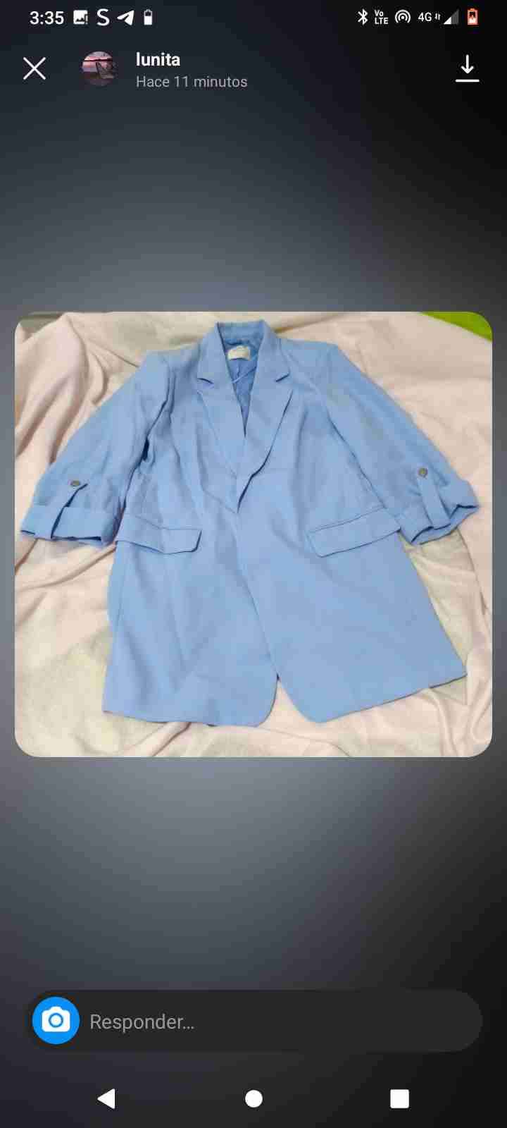 Blazer azul celeste, ideal para ocasiones formales, talla L, se utilizo solo para una presentación de tesis, no está lavada después de esa presentación se guardo, si la compran la entrego lavada.