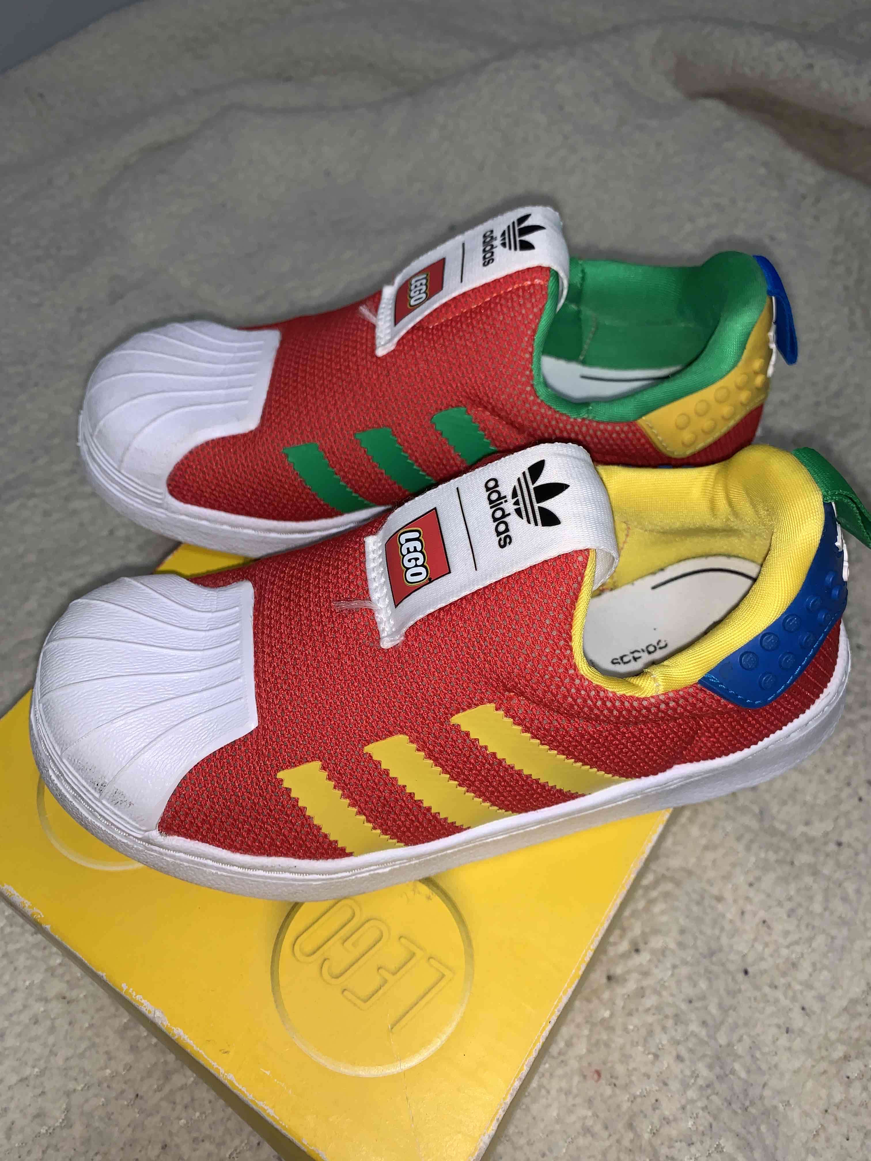 Zapatillas para niños con diseño colorido de Adidas y Lego. En buen estado y cómodas para el uso diario.