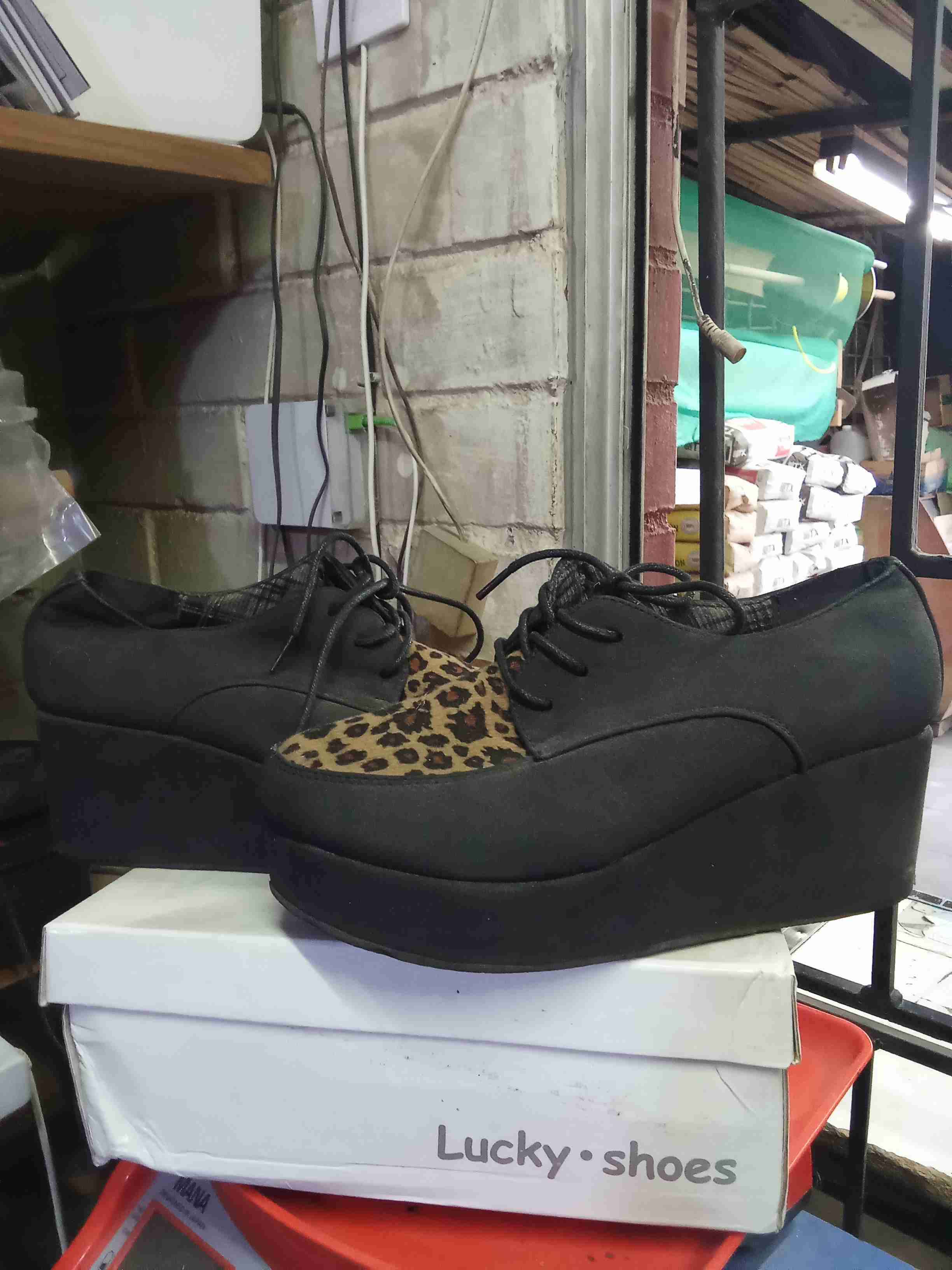 Zapatos de plataforma en negro con detalle de estampado leopardo. En buen estado general.