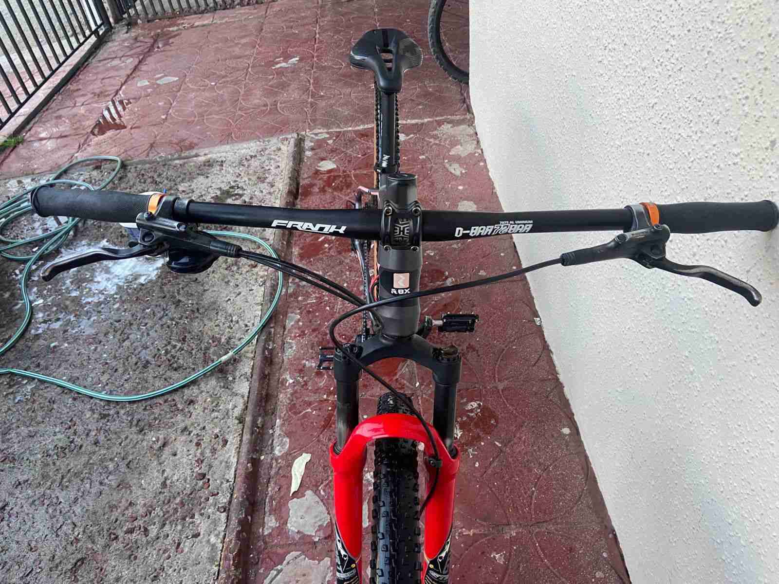 Bicicleta de montaña en buen estado, ideal para rutas off-road. Marca visible en el manubrio, lista para usar.