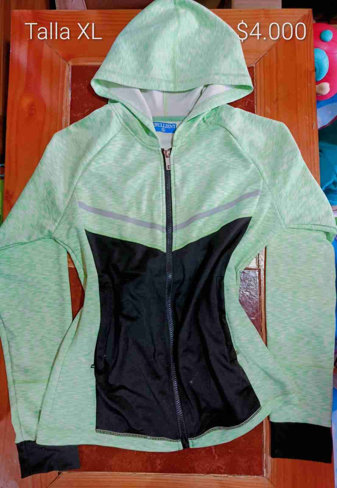 Chaqueta deportiva de color verde con capucha y cremallera. Ideal para actividades al aire libre. En buen estado, con tamaño XL.