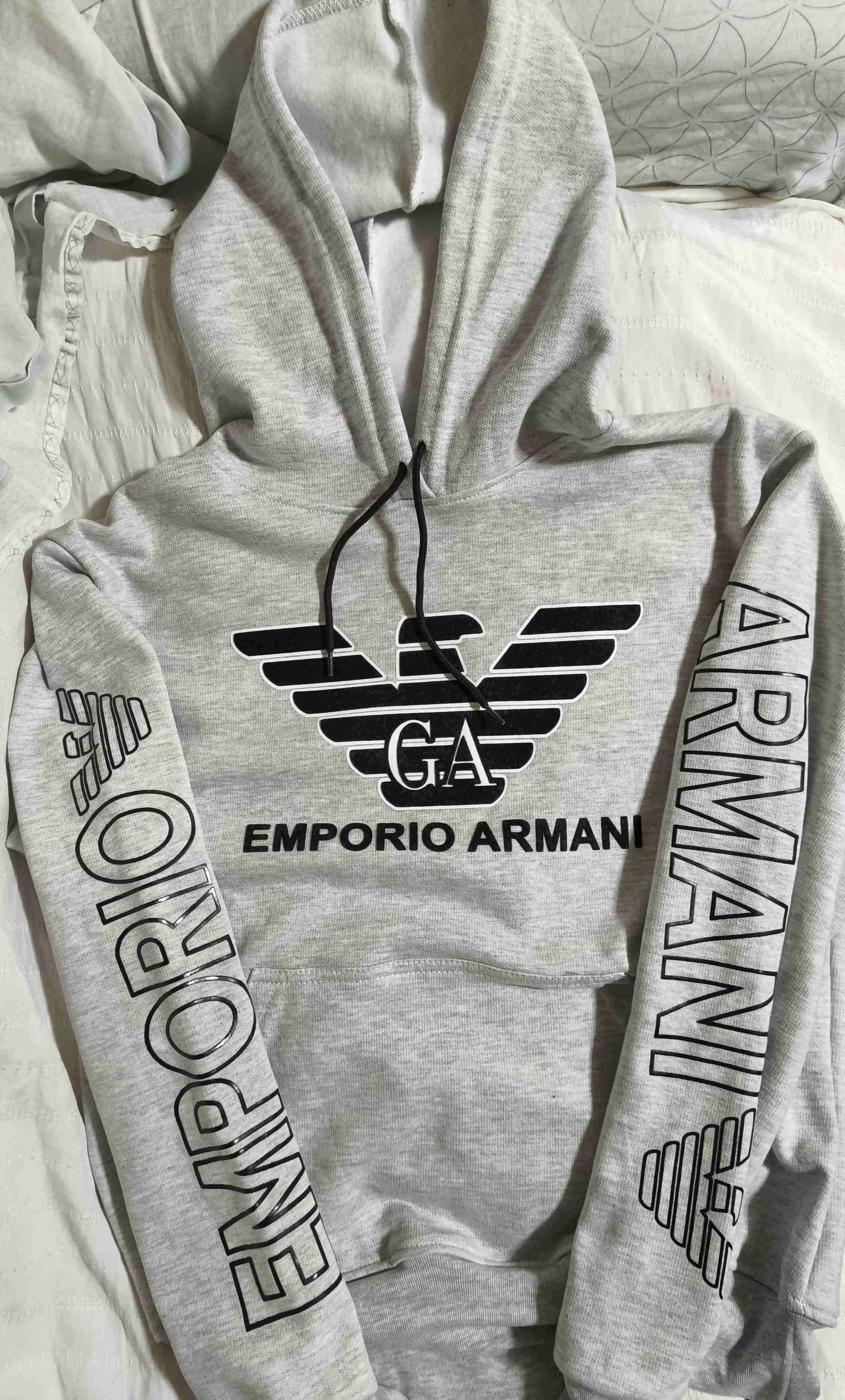 Polerón gris con capucha de Emporio Armani, estilo casual y moderno.