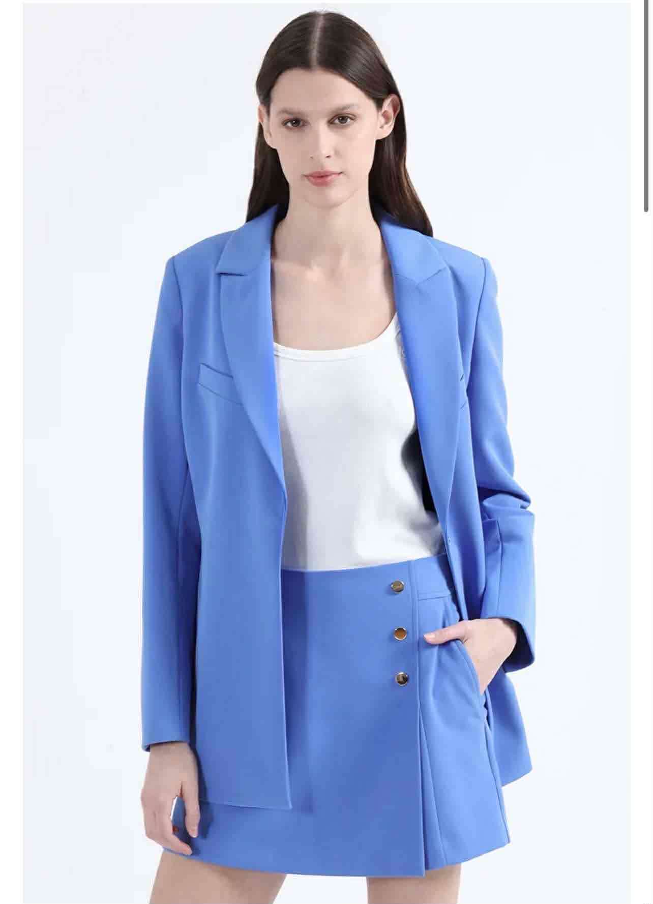 Elegante traje color azul, ideal para ocasiones formales. Buen estado, con botones decorativos. Short y blazer !!! Color único !!!
