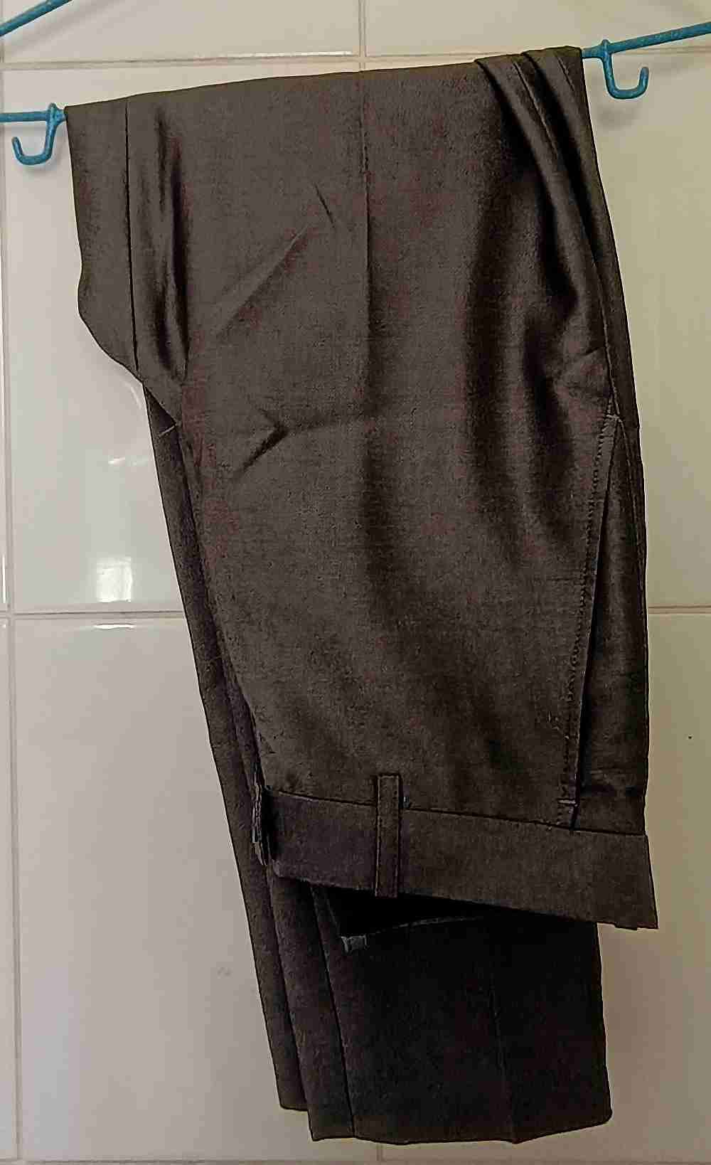 Traje gris con pantalón, veston con detalles en negro y gilette, solo un uso talla 42, marca about