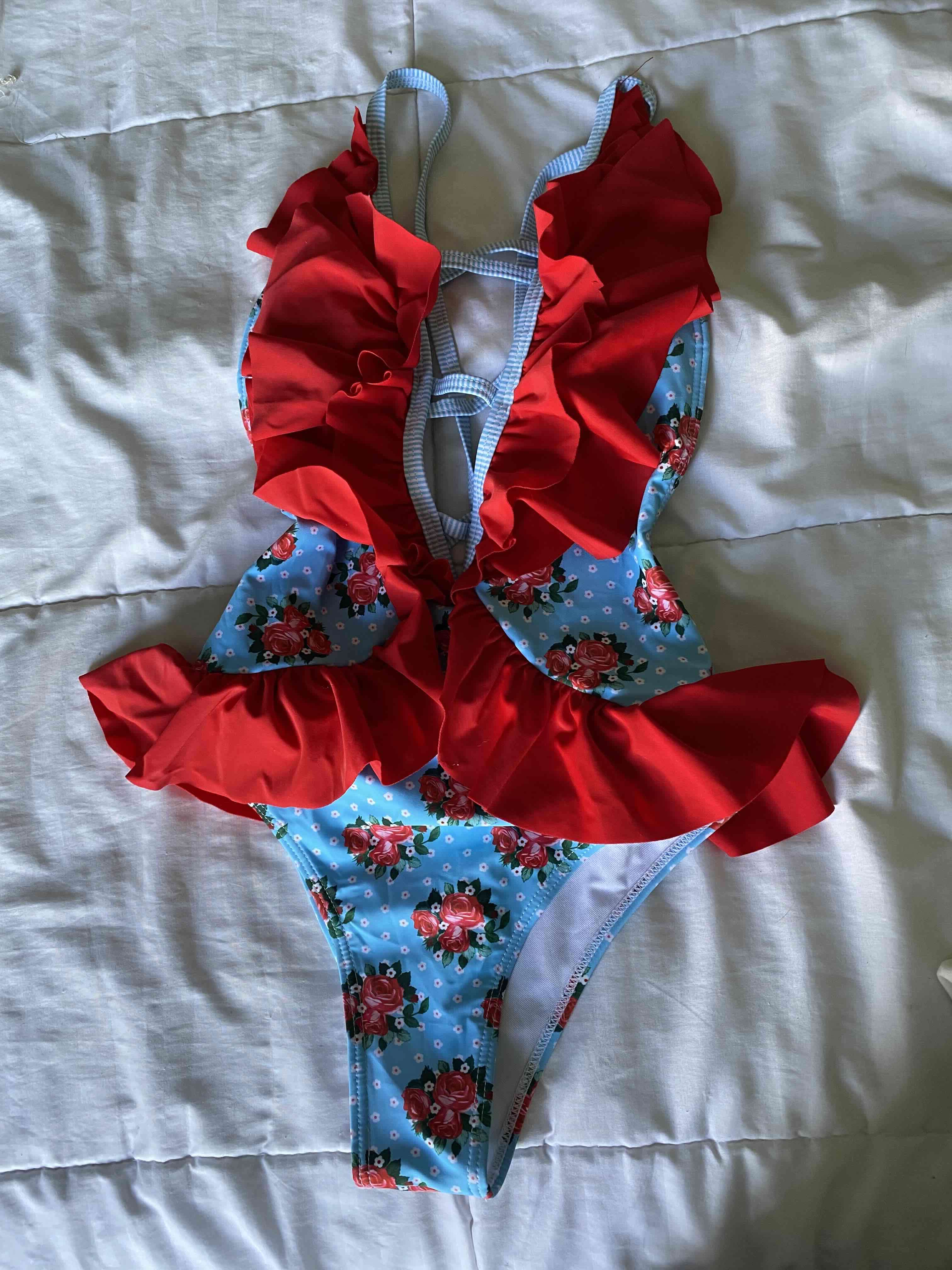 Traje de baño veraniego talla XS completamente nuevo sin uso, tiene escote pronunciado y es sin espalda, trae almohadillas. Precio conversable