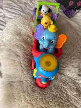 Tren infantil con figura de elefante y animales, ideal para niños pequeños. Buen estado general. Locomotora Fisher Price con luz y sonido 3 personajes Disney, a Dumbo y Leon se le pueden mover las piernas