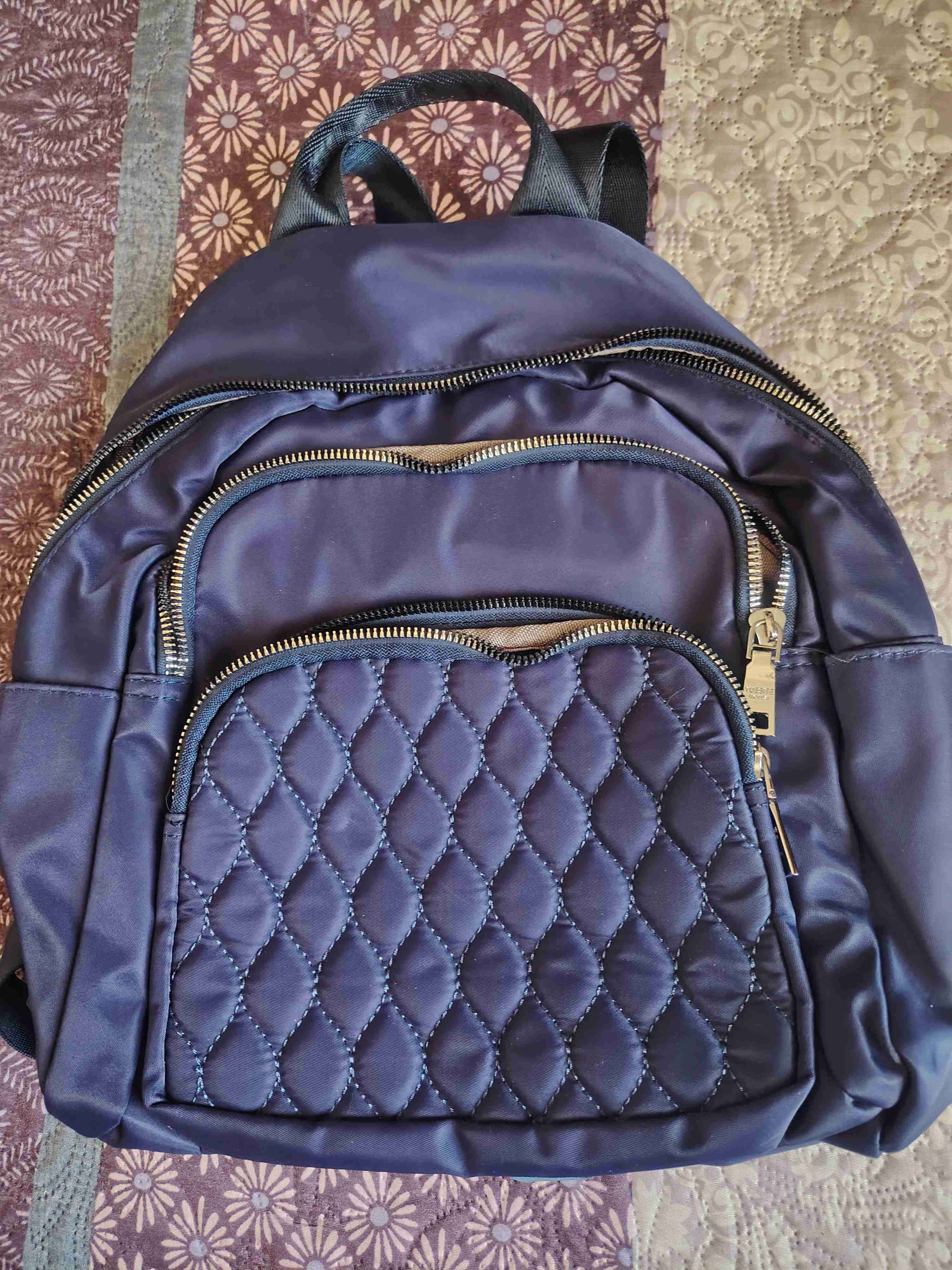 Linda mochila azul con diseño acolchado, ideal para uso diario. En buen estado con cierres funcionales.