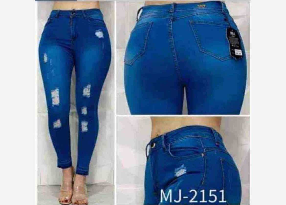 Jeans de mujer azul con diseño rasgado, ideal para look casual. En buen estado y cómodos.