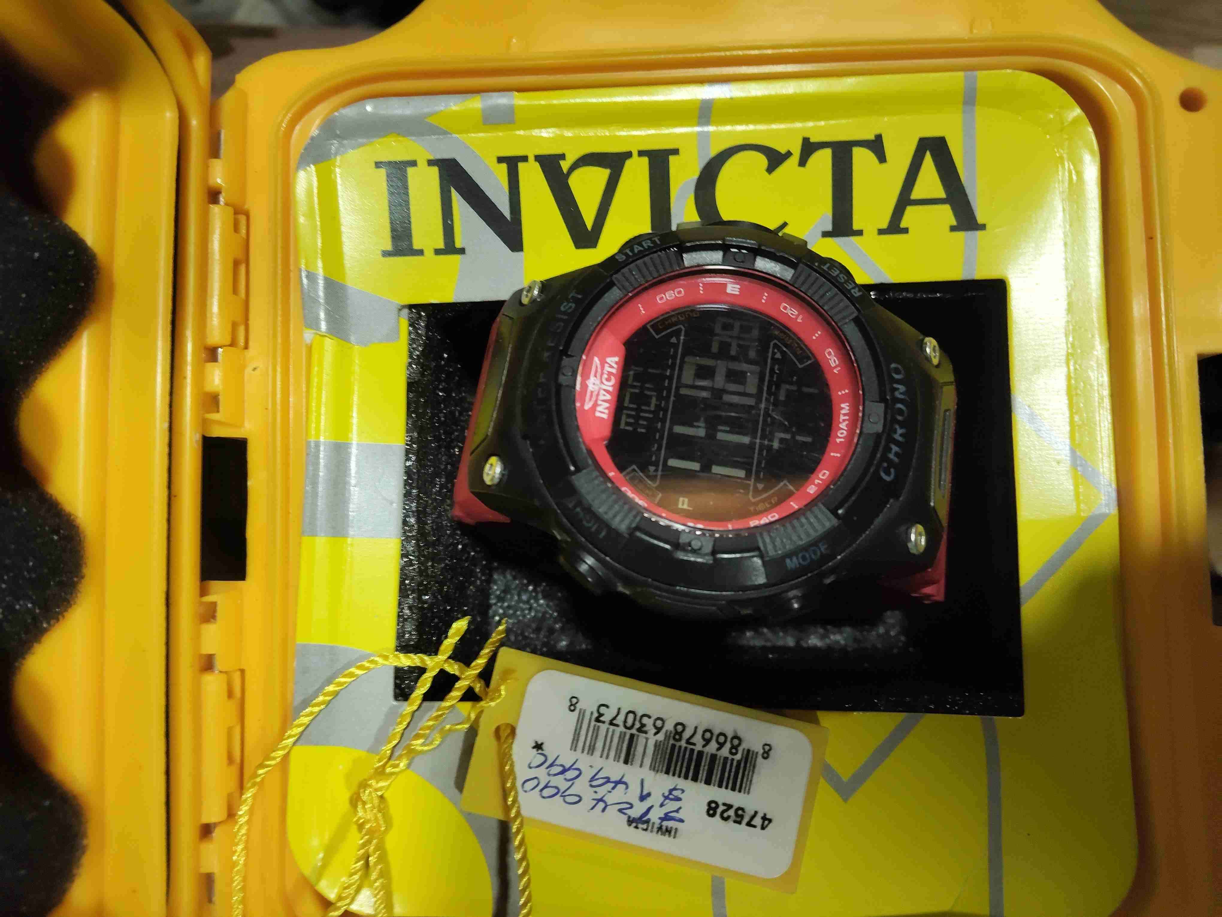 Reloj digital Invicta en negro y rojo, ideal para uso casual o deportivo. Buen estado en caja original.