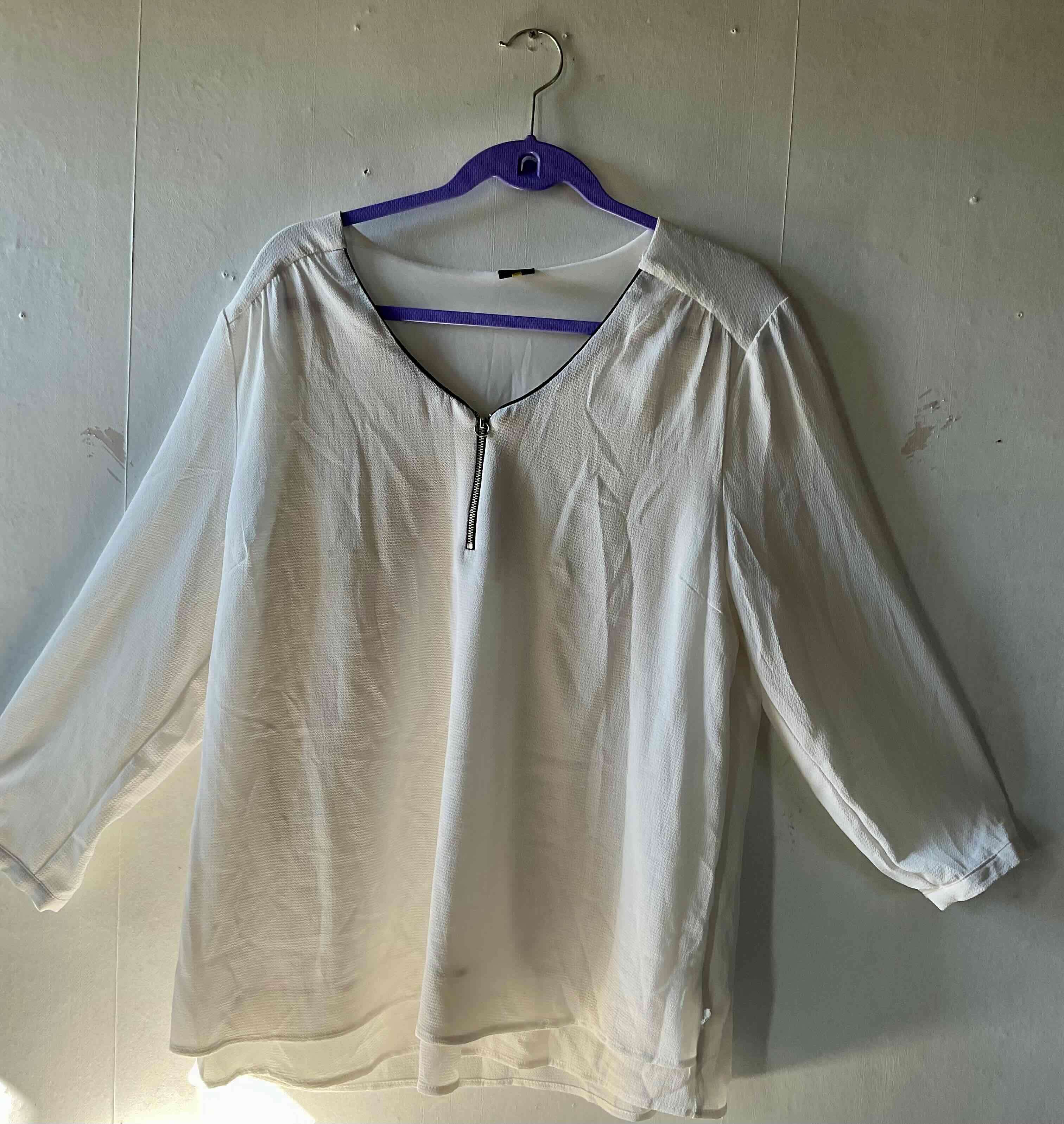 Blusa elegante de color blanco con cierre en el frente. Ideal para ocasiones formales o informales. Buen estado general, con leves signos de uso.