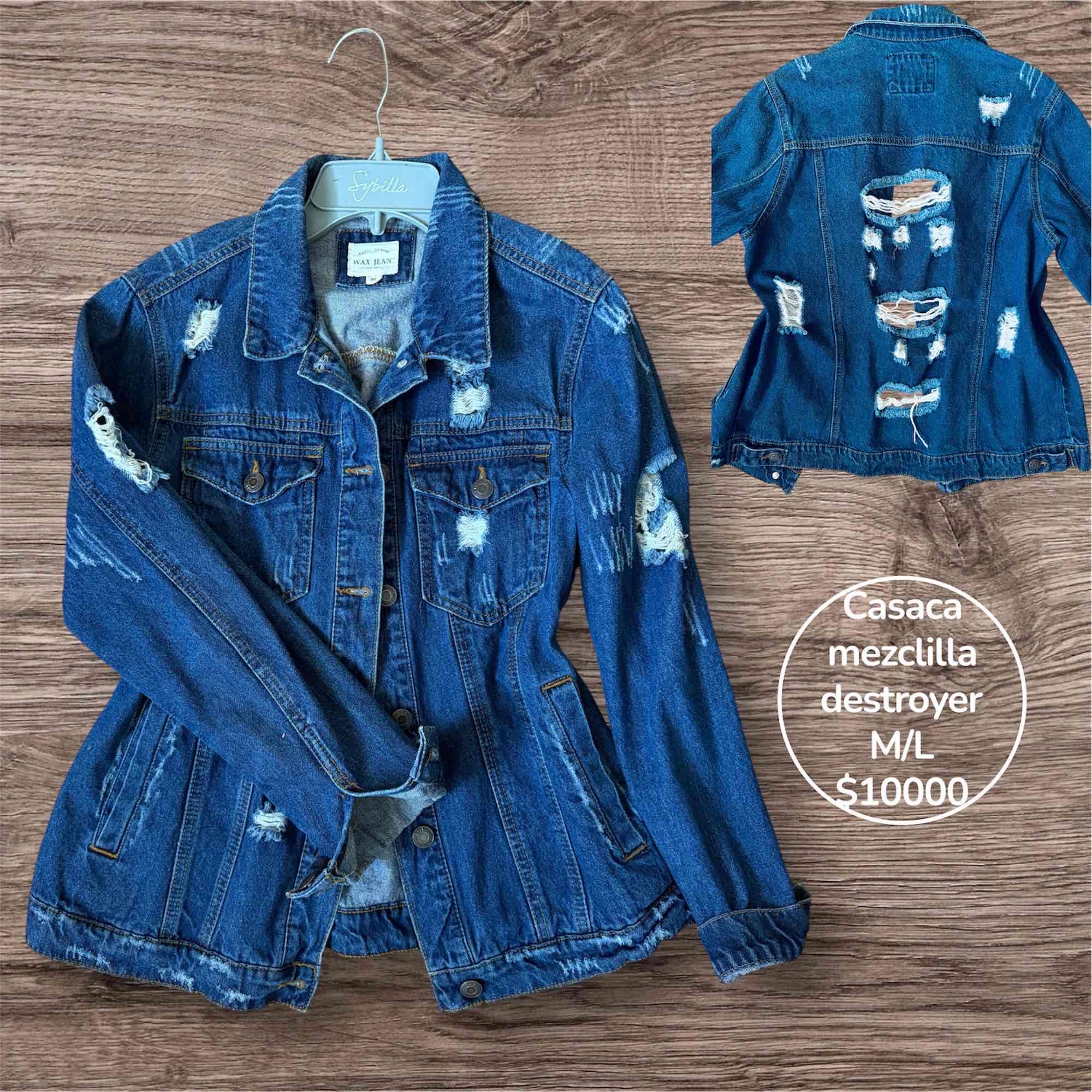 Chaqueta de mezclilla con estilo destroyer, ideal para un look casual. En buen estado, talla M/L.