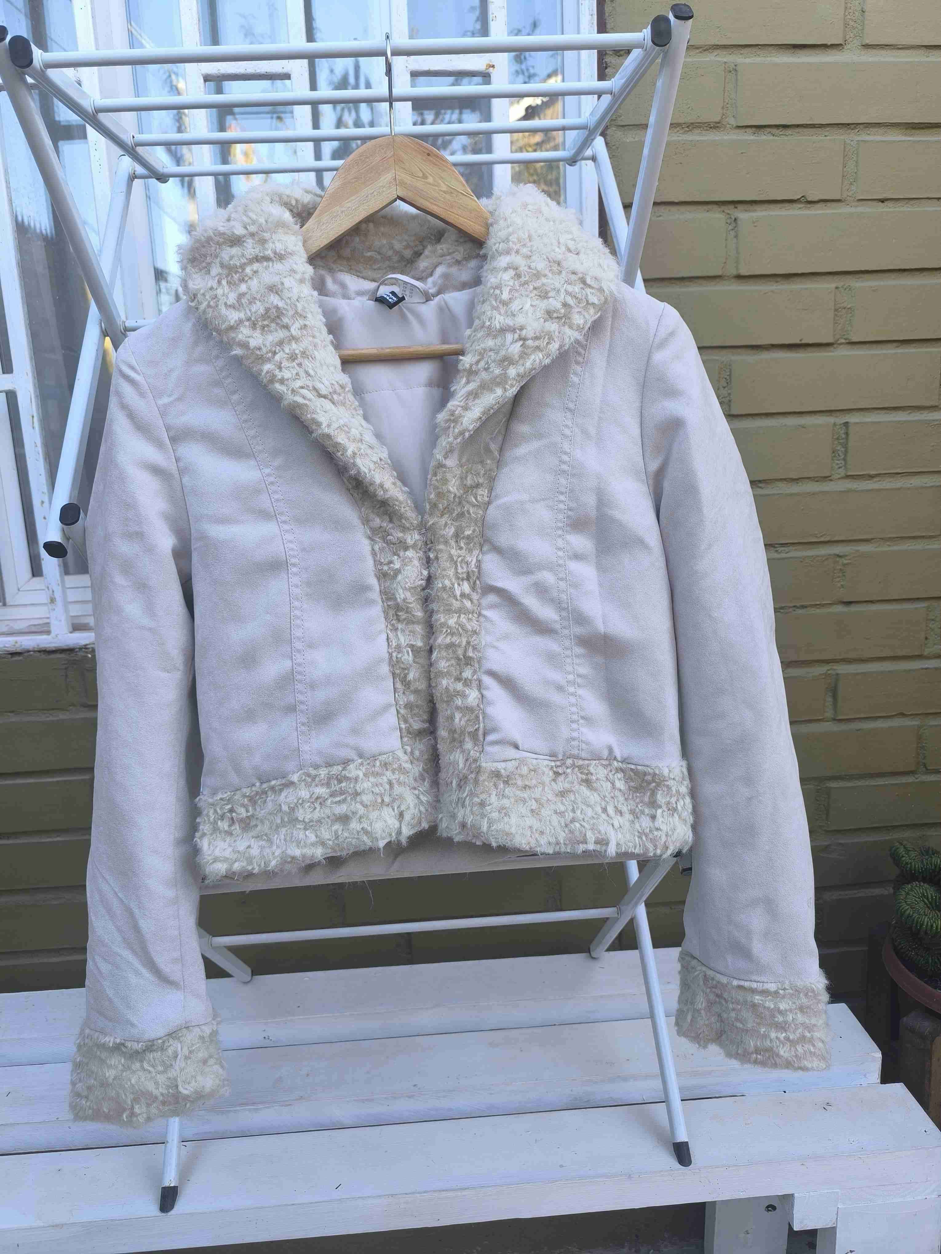 Elegante chaqueta beige con pelaje interno, ideal para climas fríos. En buen estado, con detalles de peluche en muñecas y cuello. En mi perfil igual tengo más ropita por si están interesad@ en ver, está la opción de hacer un solo envío si llevan más de una prenda