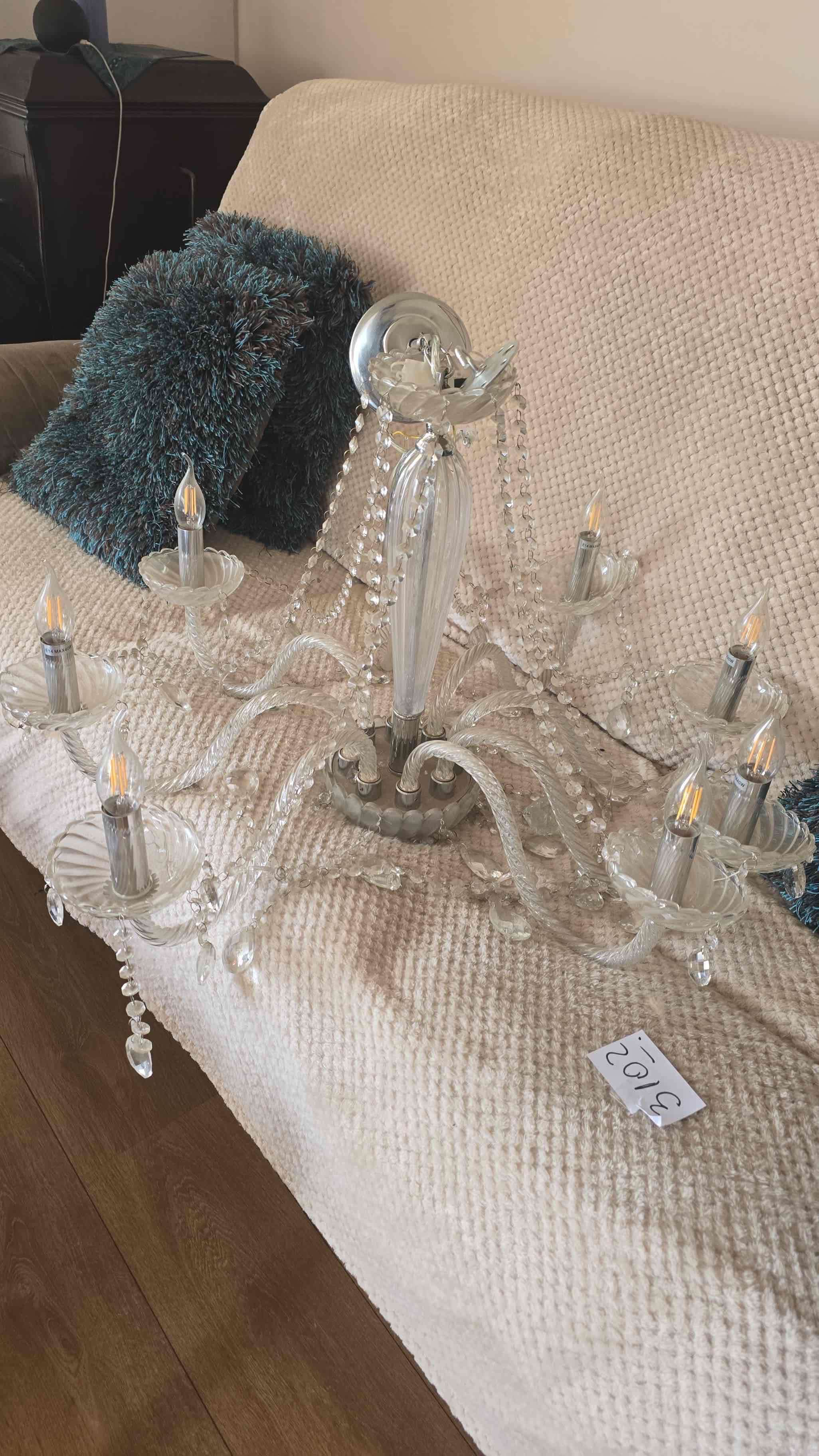 Elegante candelabro de cristal, estilo clásico. Ideal para decoración interior. Se encuentra en buen estado y funciona bien.