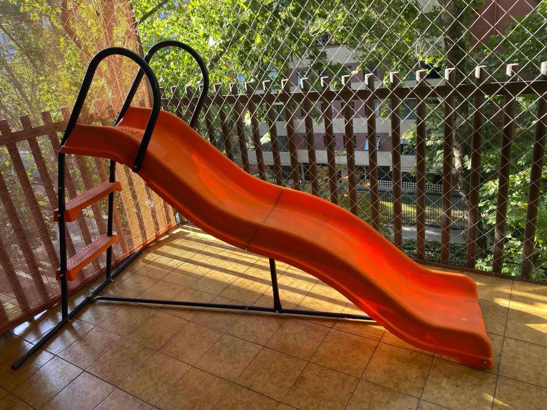Resbalín ideal para entretener a los niños en el patio o terraza. En buen estado, con estructura metálica resistente.