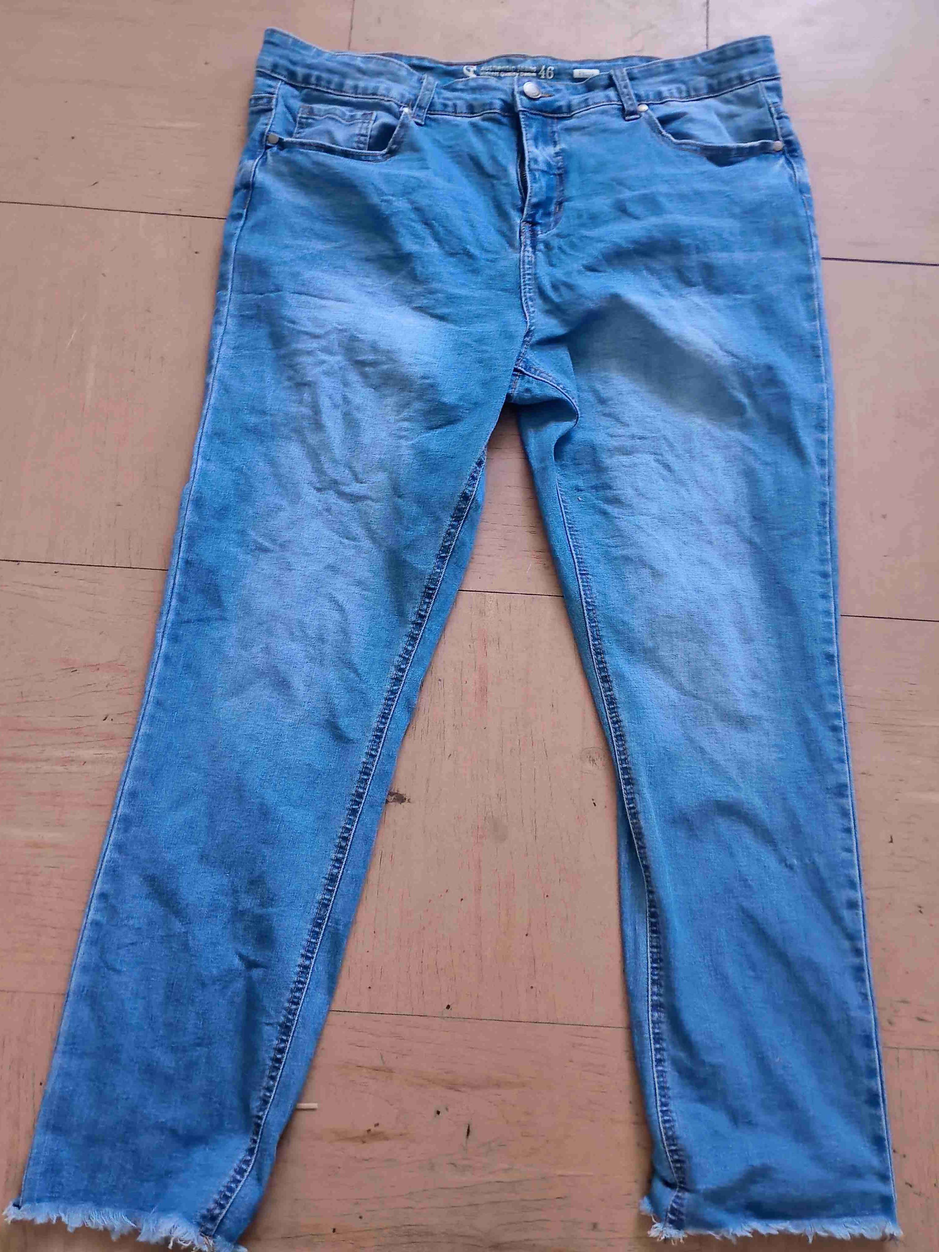Jeans de mezclilla en buen estado con estilo deshilachado en la parte inferior. Ideales para un look casual diario.