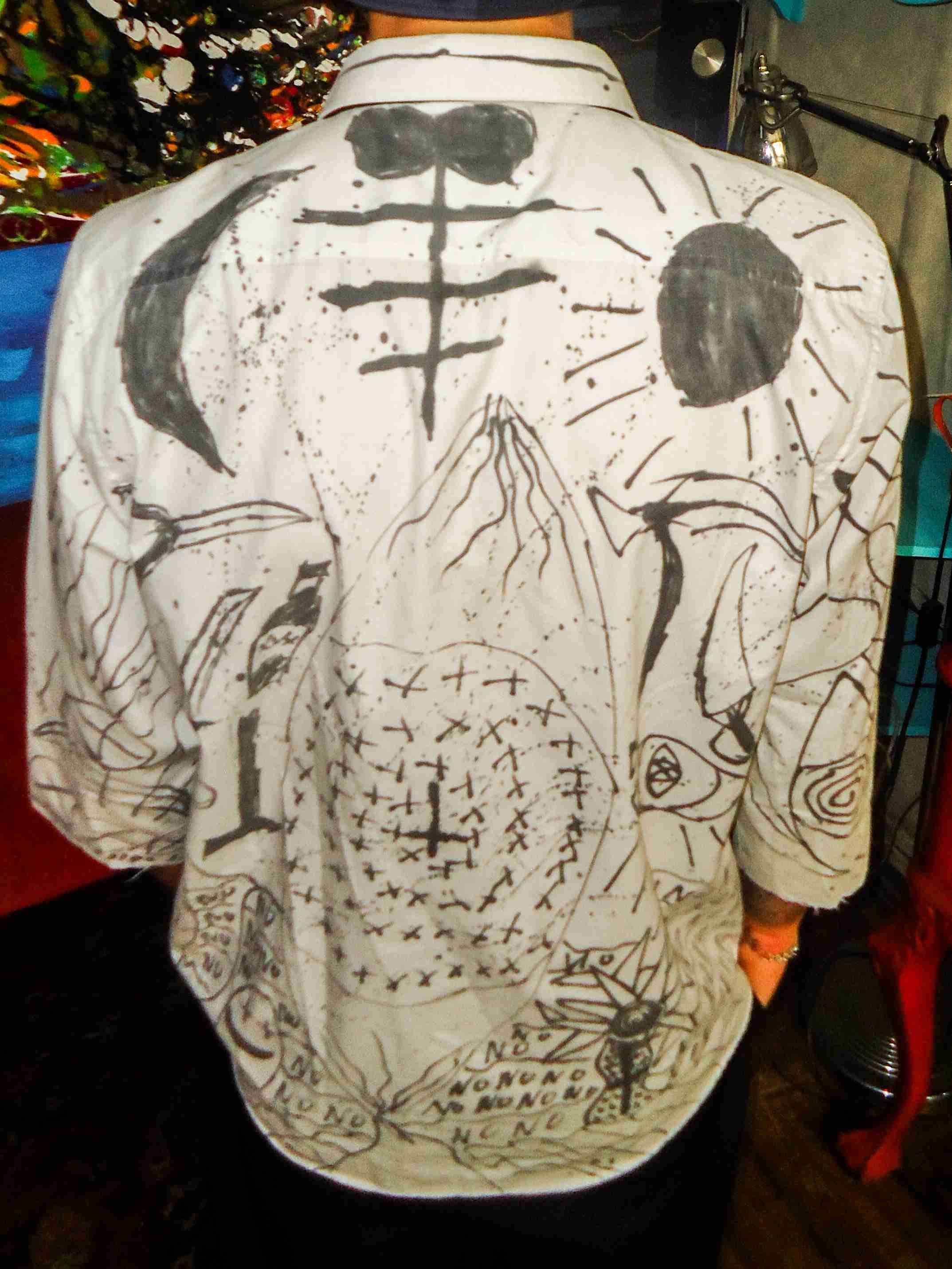 Camisa blanca con diseño artístico