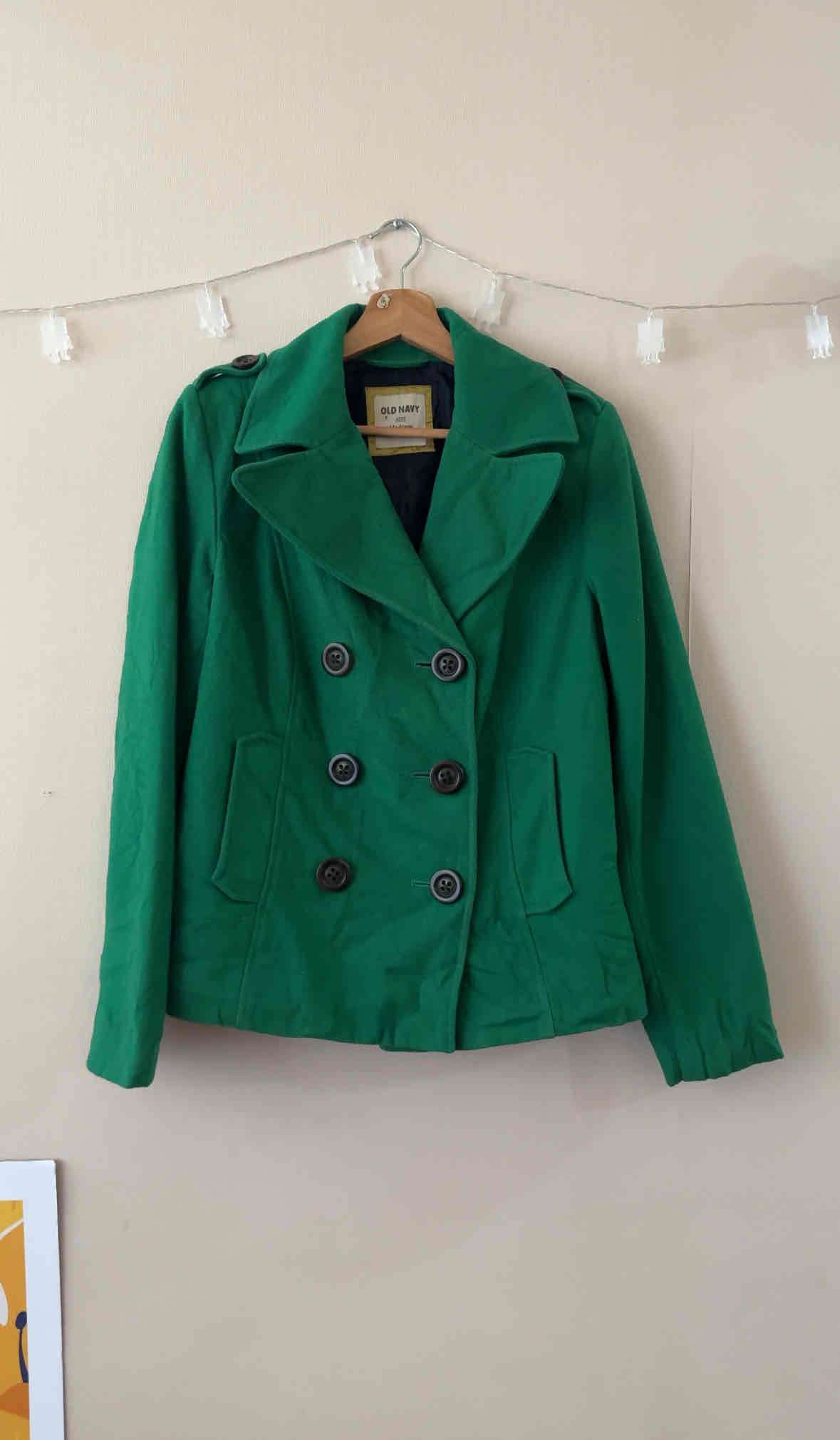 Abrigo verde esmeralda de Old Navy, estilo clásico con botones. Talla M