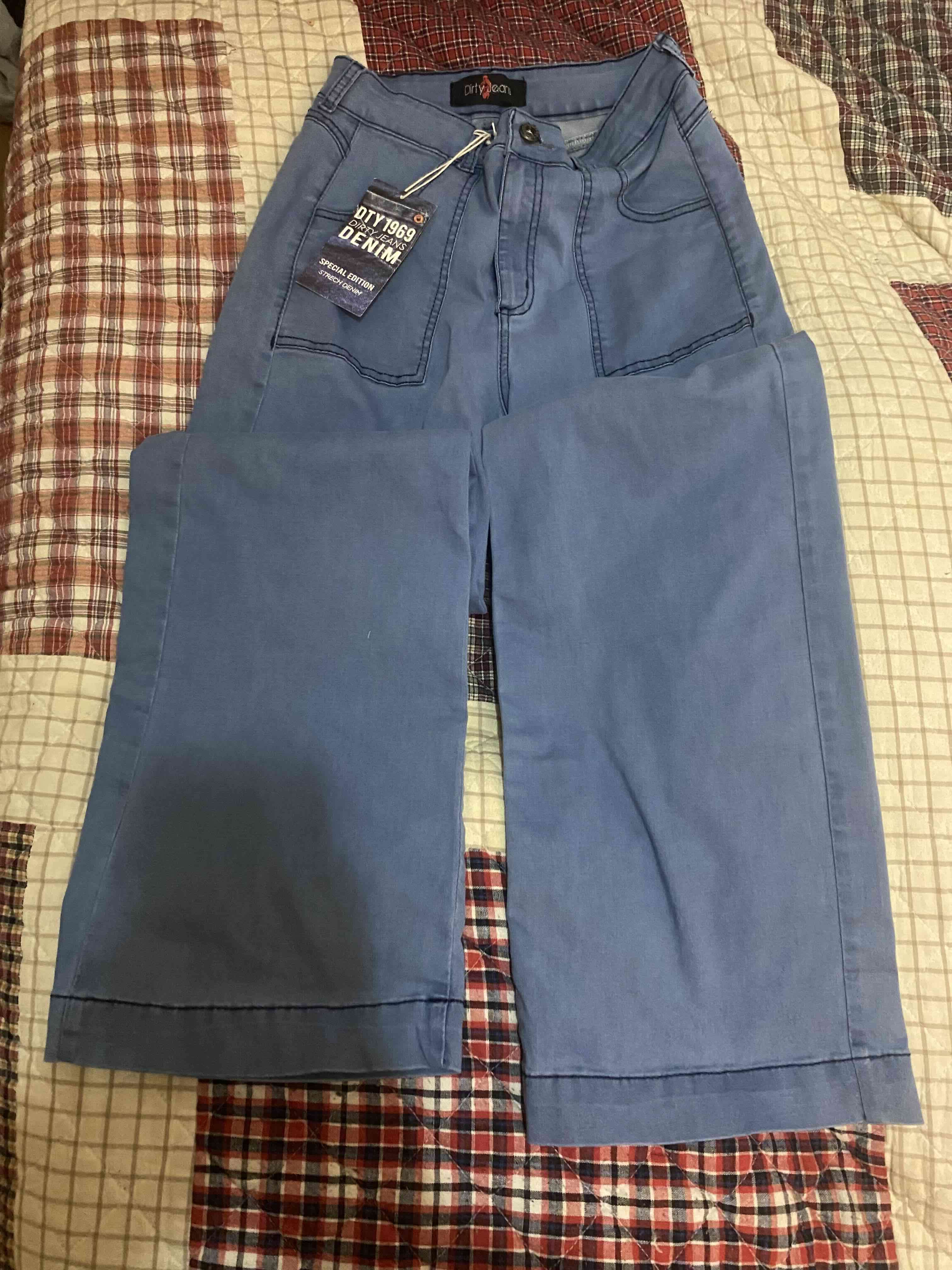 Jeans de denim azul estilo casual con etiqueta especial. Ideal para uso diario.