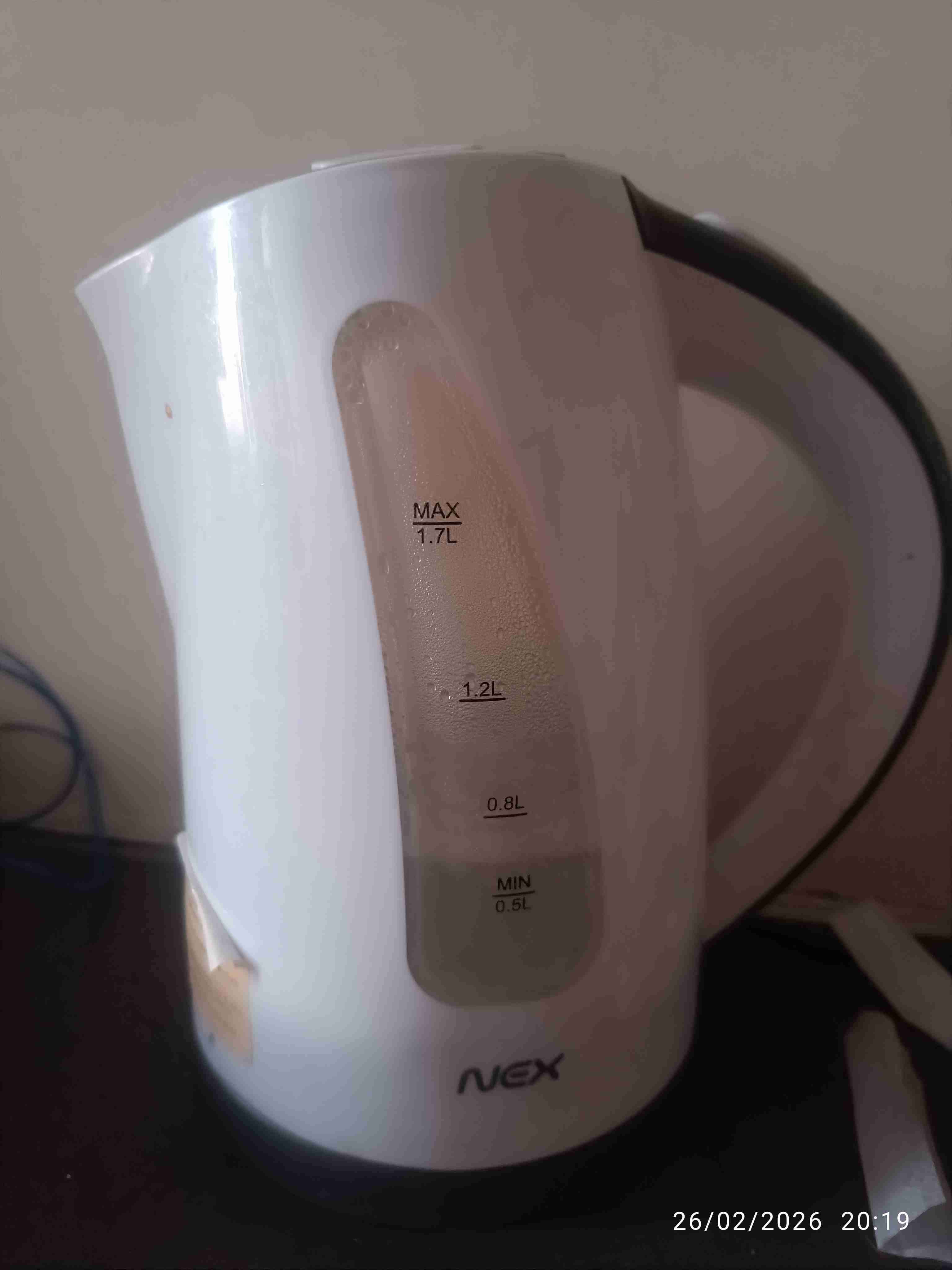 Hervidor eléctrico marca Nex con capacidad de 1.7 litros. Funciona correctamente, ideal para cocina.