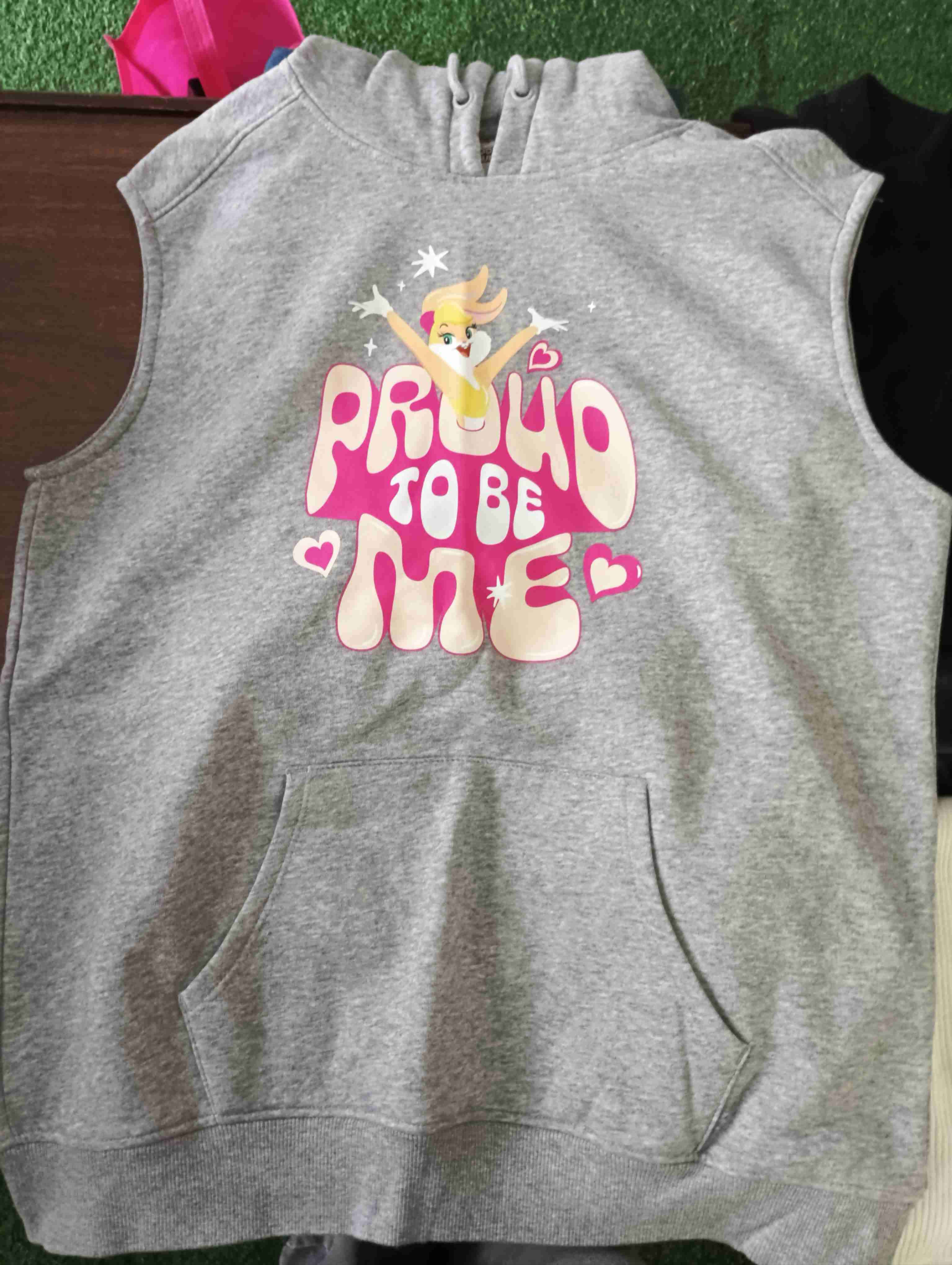 Polerón gris sin mangas con diseño "Proud to be Me". Ideal para estilo casual relajado. Buen estado,