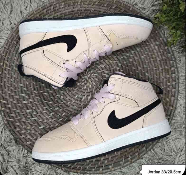 Zapatillas tipo Jordan en color rosado, ideales para un look deportivo y casual. En buen estado, con suela blanca resistente.n 33